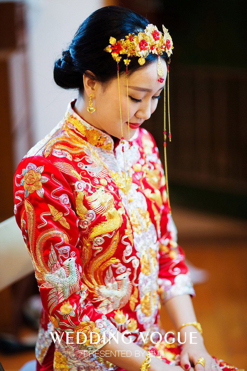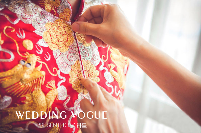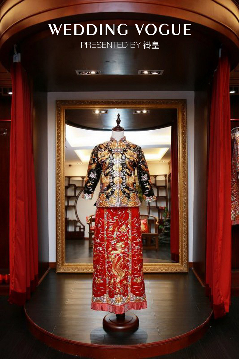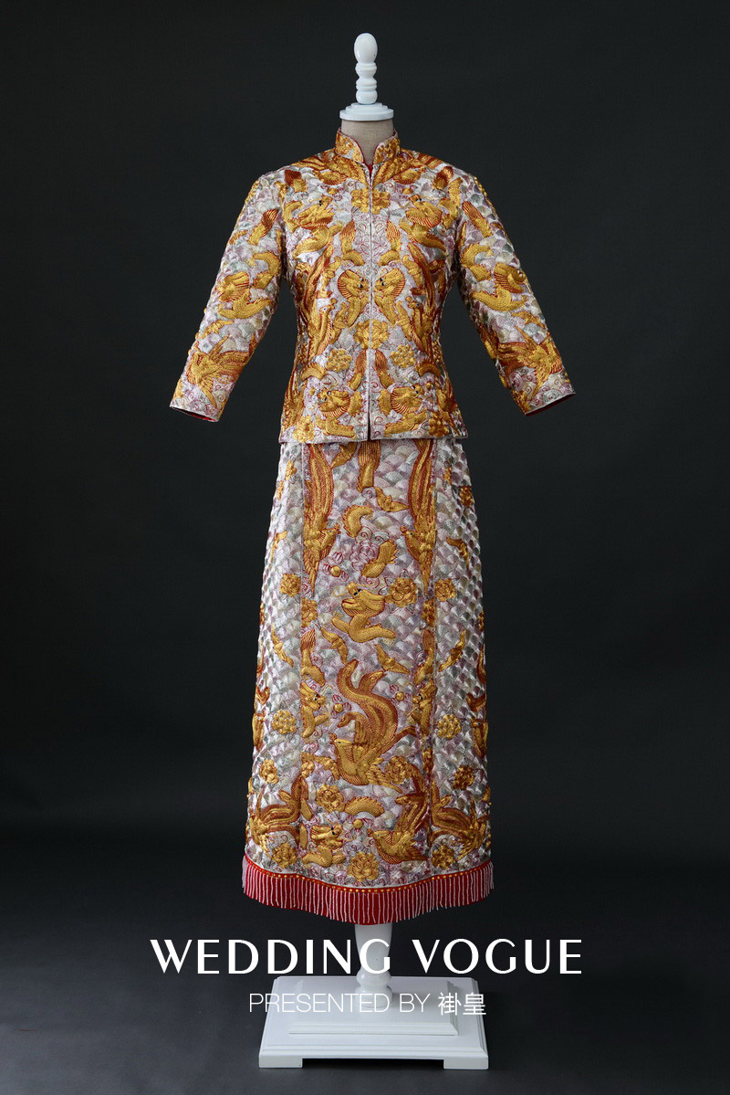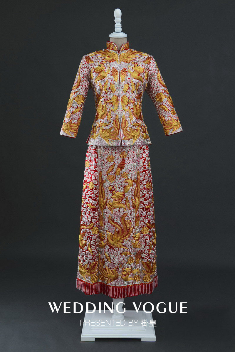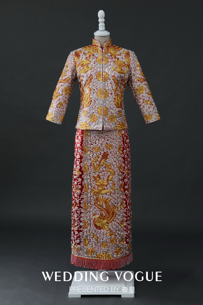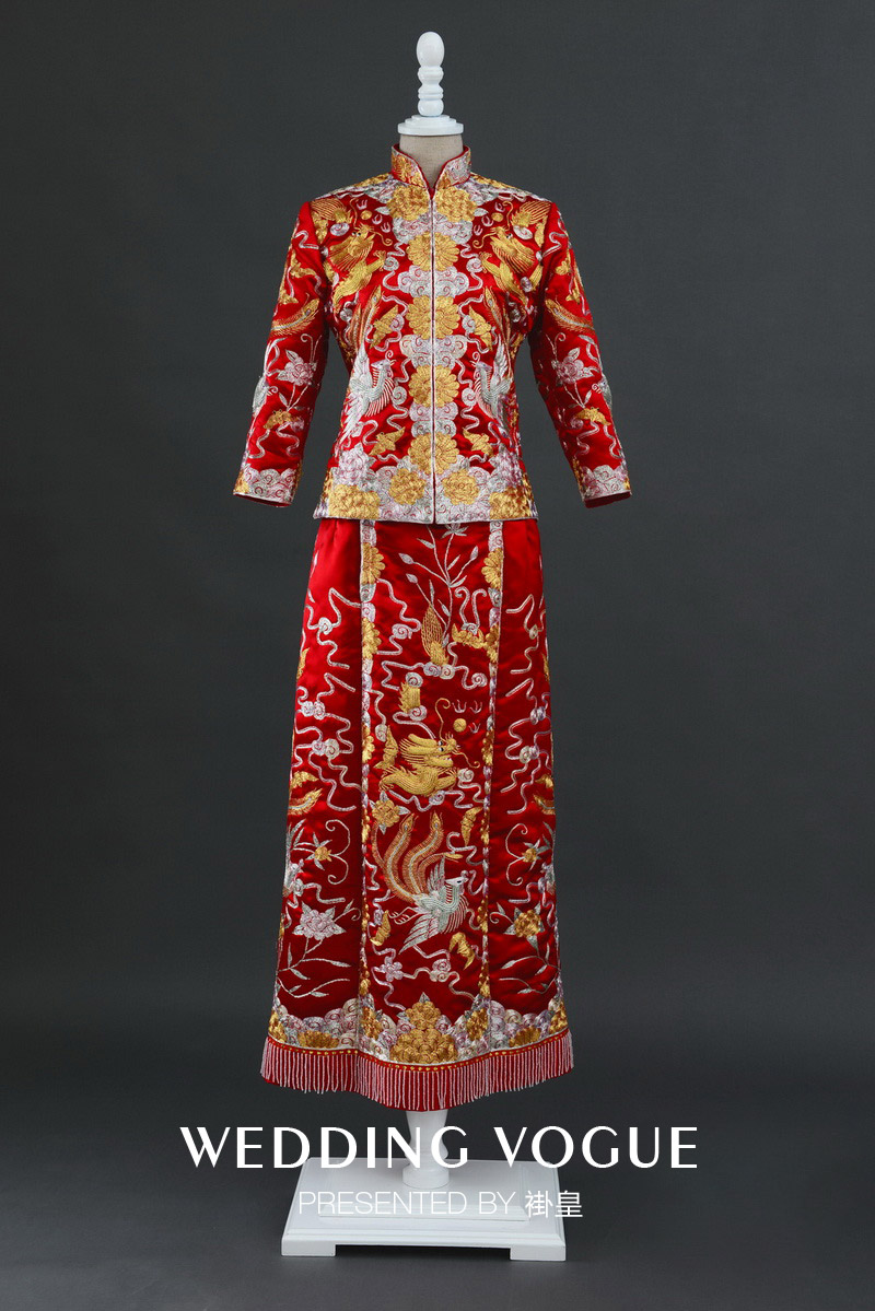 裙褂源自于清代汉族妇女的服饰,沿袭了自东汉以来华夏妇女传统的上衣下裳制,裙褂的“褂”是指上身的对襟衣,“裙”则是下身长裙。早期的裙褂颜色流行黑褂红裙,但是由于家族中的女性长辈在婚嫁当天也会穿裙褂凸显身份,为了避免与长辈撞衫,新娘子的裙褂摒弃了黑色;而按照中国传统的婚姻俗例,大红色是正室穿着的颜色,因此,裙褂便逐渐演变为“红褂红裙”,并且这种形式一直沿用到今天。现在传统规矩已经宽松不少,简化为新娘子穿大红裙褂,长辈如果要穿裙褂,会选较为成熟的枣红色,紫红色,真正讲究的只有在香港的某些世家大户的婚宴上才有机会一饱眼福。