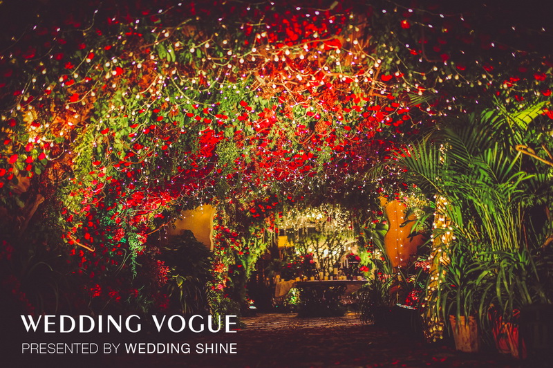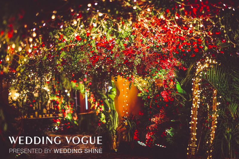 而在最容易聚集来宾的甜品桌区域,贯穿整个设计的复古色彩花材及绿植加深了原始森林的氛围特色。透明的水滴形器皿中装载的火红玫瑰花瓣,让整个布置在虚实之间营造出梦幻而复古的森系风格,美感舒适随心。