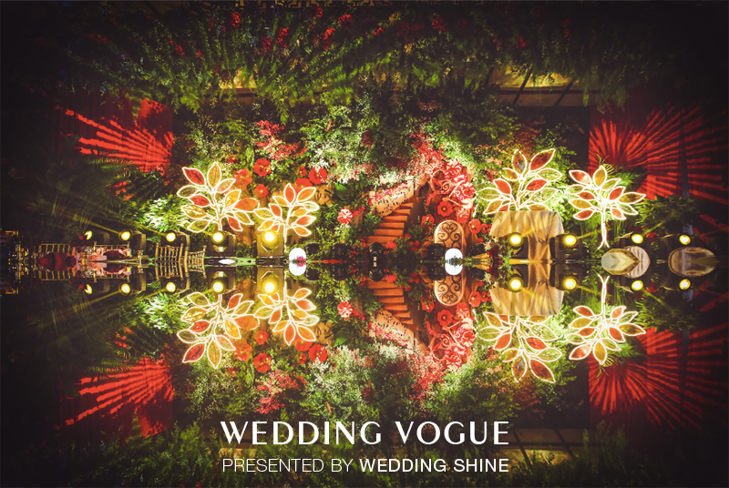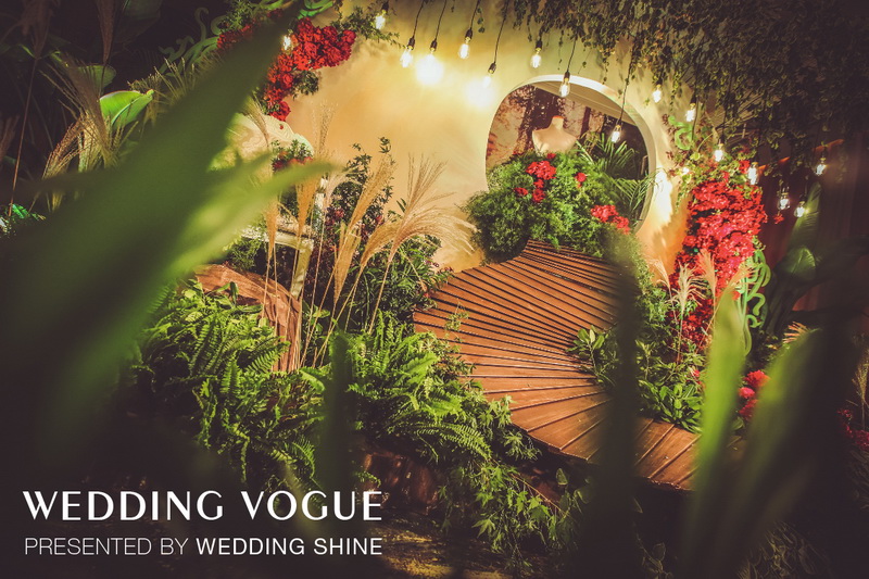 对于萤火虫,新娘情有独钟,于是炫薇廷在设计之初,决定在整个森系风格中中加入萤火虫元素,为新娘实现憧憬已久的梦幻画面。在布置上,炫薇廷通过攀岩在石洞壁上的花朵,充满星光的萤火虫洞,高低错落的石头,以及生长出的青苔绿植和麦穗,将整个宴会现场营造出丛林中植物自由生长的感觉。