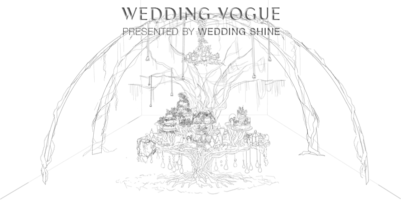 除开虫洞上攀岩着的绿植玫瑰,和洞顶星星点点闪烁的串灯,炫薇廷特意将放置甜品的圆桌挖空,一个大树从中“生长”,蔓延出枝枝叶叶,顶部的鹿角灯让整个森林更为奇幻,和自动闪烁的小颗粒灯饰呼应着,以求能真正营造出萤火虫洞的生动效果。