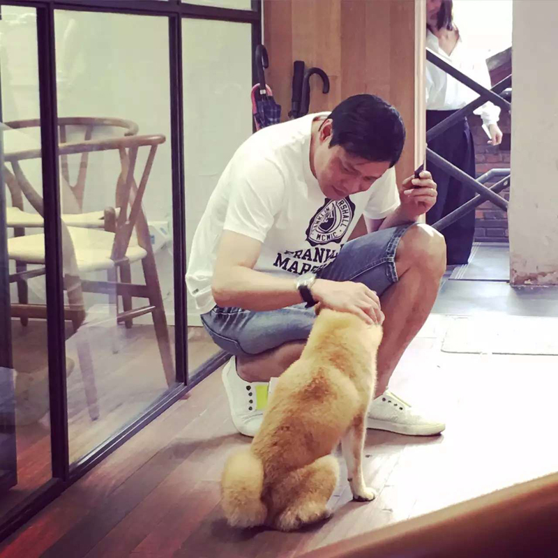 第一个迎接范志毅夫妇的,是我们的萌宠佐罗君。只见范志毅穿了一身白色T恤,浓浓的足球学院风,顿时觉得F&M这个牌子做他们夫妻俩的logo也是很应景的嘛。