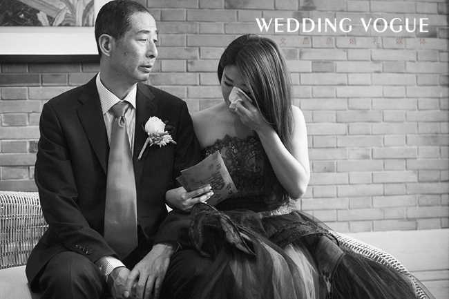 Brandy单膝跪地的求婚,他抬头看向面前的姑娘,充满爱意和宠溺,对婳婳来说有两个最重要的男人,一个是眼前的Brandy,一个就是父亲,疼爱了自己这么多年,视自己为掌上明珠的父亲,而这个男人今天要送自己的宝贝公主出嫁又是什么样的心情,父亲对每个女孩来说都是儿时记忆里无所不能神一样的男子,Brandy为婳婳父亲敬茶的时候婳婳哭了,这眼泪很安静,也充满了很多复杂的情绪,“都说养儿能防老,可儿山高水远他乡留,都说养儿为防老,可你再苦再累不张口,儿只有清歌一曲和泪唱,愿天下父母平安度春秋”婚礼现场能见他们安静的身影,对新人来讲最重要的一天,对他们又何尝不是,愿他们共享承欢膝下的乐趣。