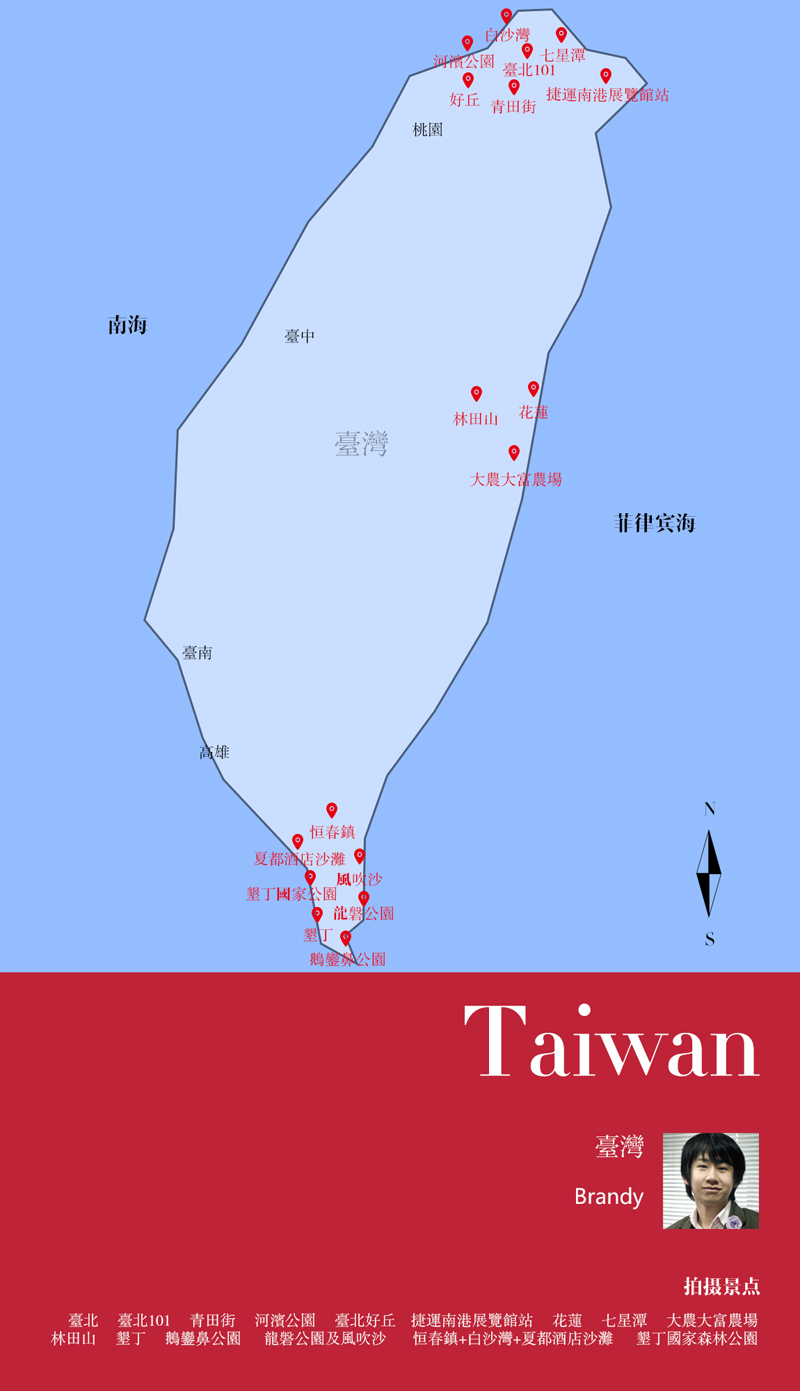 以下我们会介绍我们在台湾东线,拍攝的,三座市镇,分别是台北、 花莲和垦丁。提到台湾的东部公路,我必须再提一下,无论是驾驶乐趣还是沿途风景,个人认为,都比传奇的加州一号公路要优秀得多,喜欢自驾的朋友,绝对不应该错过。