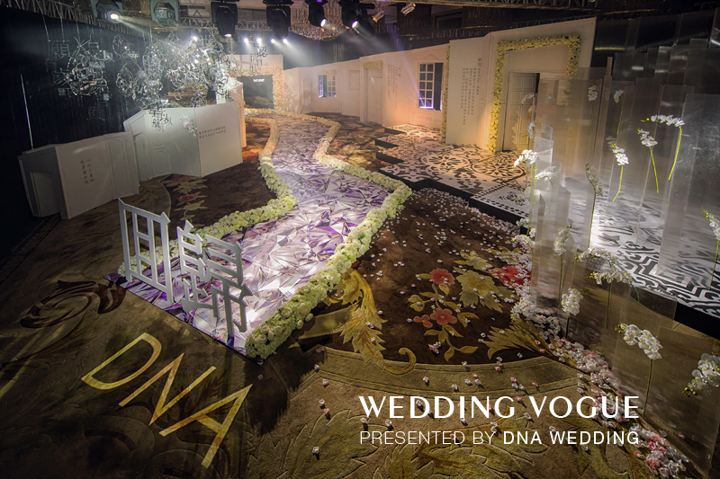 正如主持人王瑱在开场时分享那个动情小故事那样,DNA Wedding婚礼记创始人Apple是一个始终热爱婚礼,且愿意以梦为马向前奔驰的勇敢女孩。在这场以《回归》为主题的宴会设计作品中,Apple试图以回首脚下崎岖与闪耀的方式,来重新审视已无法回头的人生之路,重新回归当初的自己,回忆最初的DNA Wedding婚礼记。
