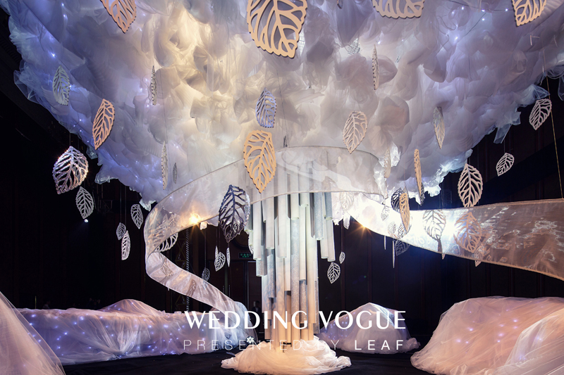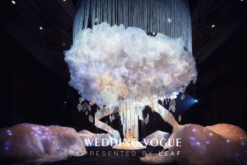 尽管世间每个人的命运不同,但无论你曾经历过什么,因为生命的无限,最终都会融合流向生命之河。这一分部则是通过蜿蜒的网纱造型,不管是从动态还是直观上都能用来很好的体现生命的之河的概念感。而在围绕生命之树周围成型的网纱象征着生命中的情感纽带,相遇既是缘。而通过悬挂的闪亮树叶来体现来自全国各地的LEAF麗芙婚禮同仁,是LEAF麗芙婚禮策划师索索对于小伙伴们的感谢。连续熬夜搭建20多个小时,第一次参加宴会趋势发布的LEAF麗芙婚禮,在用他们对于生命与情缘的理解,为所有观者带去了一份会流动于内心的感动与感触。