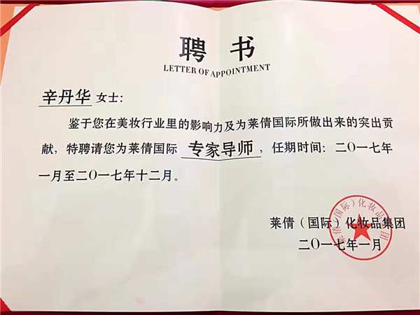 彩妆秀辛丹华老师继续签约莱倩国际担任2017年度专家导师,担任莱倩国际唯魅秀能量红形象代言人,