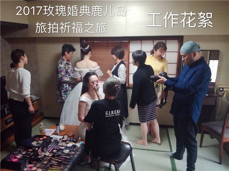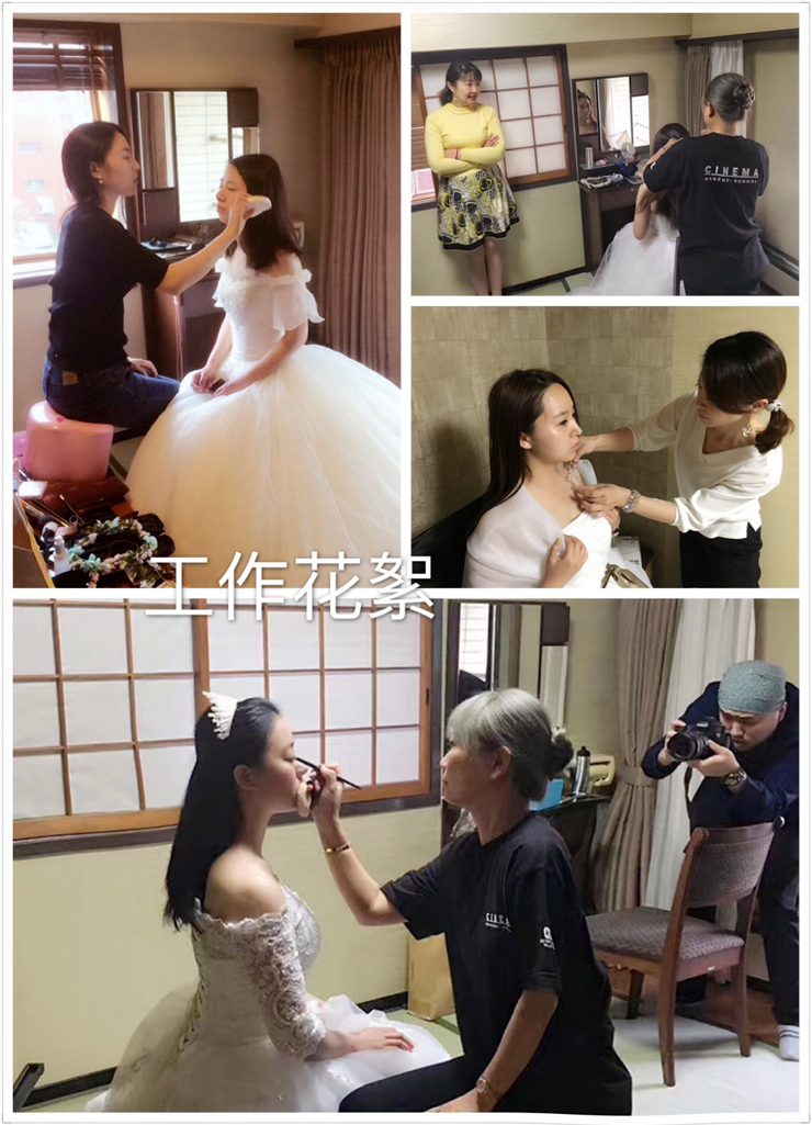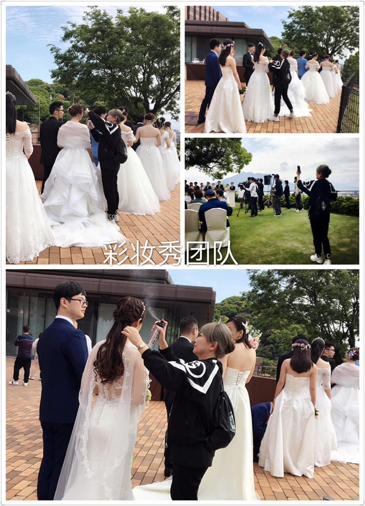 今天是新人们的婚礼日,一早6点45彩妆秀辛丹华·日本鹿儿岛工作周开始为十二对新人化妆造型!