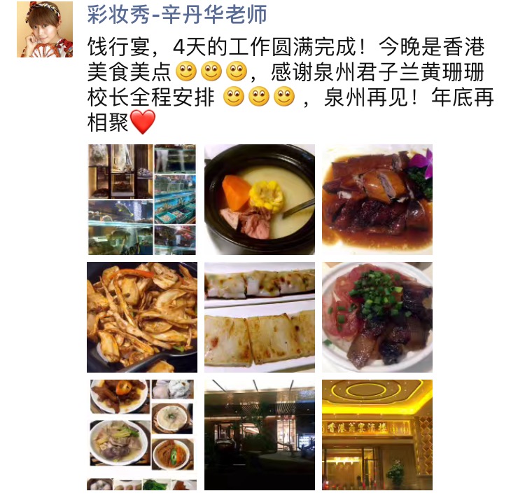 泉州君子兰教育黄校长再次邀请我们彩妆秀辛丹华老师,又一个四天的专业课程开始………,