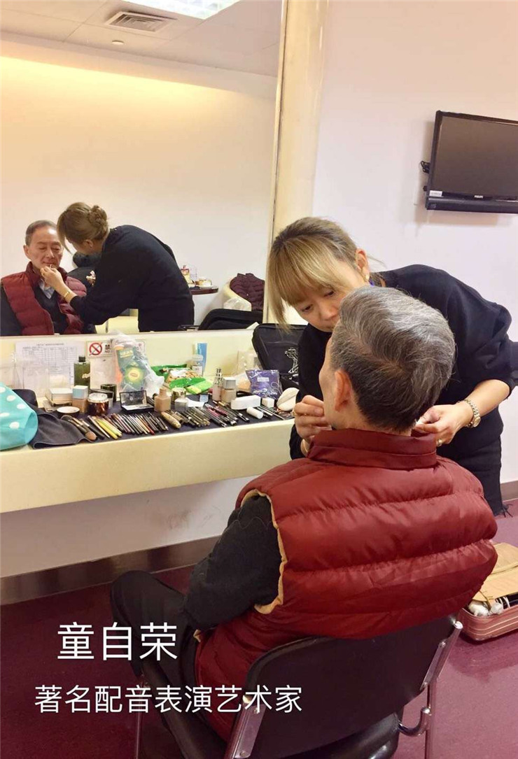辛老师为著名配音表演艺术家童自荣和丁建华老师化妆造型!
