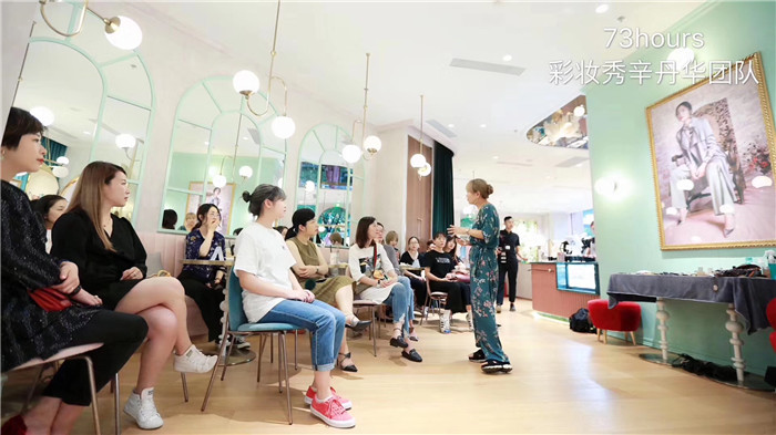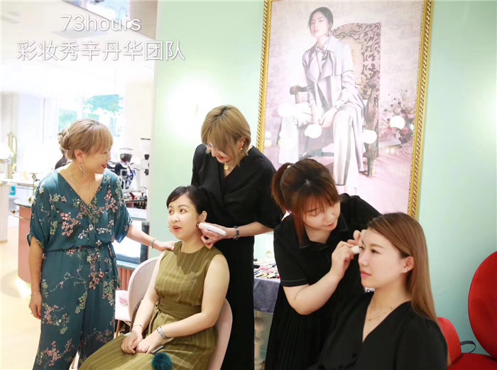为赵小姐旗下品牌73hours贵宾们示范快速清透会呼吸的妆容,