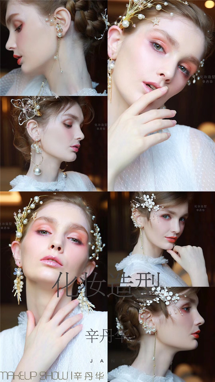 5,2019年时尚新娘化妆饰品搭配技巧示范、日韩欧美美妆解析,甜美森系新娘的打造