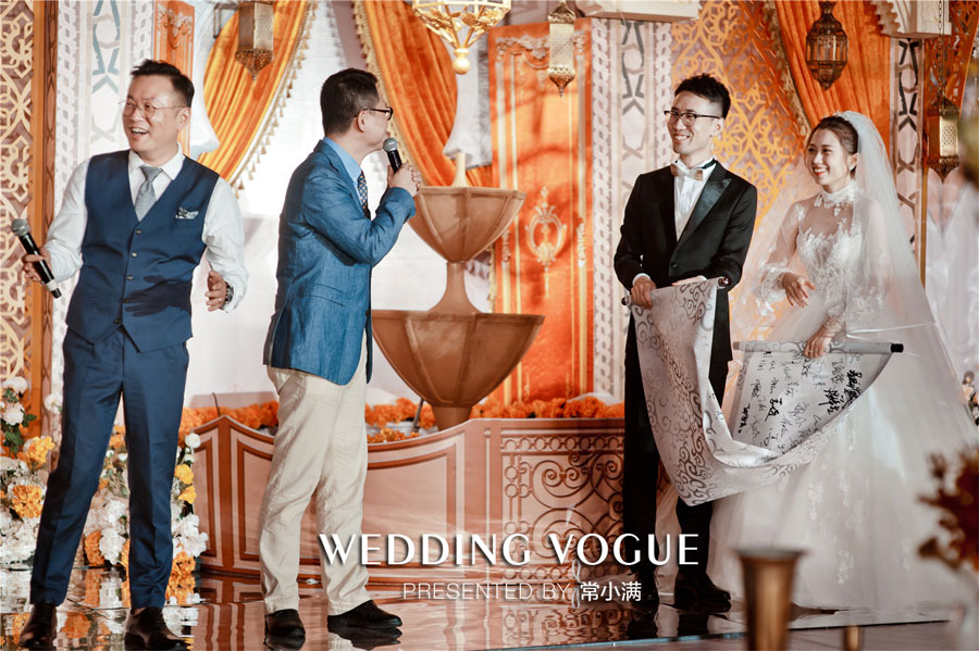 常小满和邵晨东他们俩之间一直一些交集,小满也常说要邵老师主持自己的婚礼,邵晨东也权当客气罢了。没想到在今年亚洲婚礼风尚盛典上,小满郑重其事地跟他确认了这件事情。两人还为此整整沟通了一晚上。小满呢,也聊到作为主持人,对婚礼主持的诉求和看法;聊到作为新郎,对于婚姻,对于婚礼仪式感的认定等等。两人的交谈是一次婚礼沟通,也是一场行业心得的探讨,非常愉快。