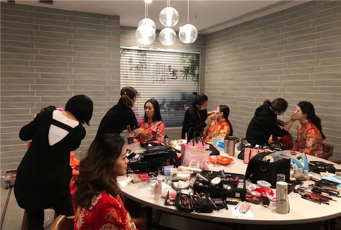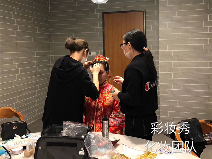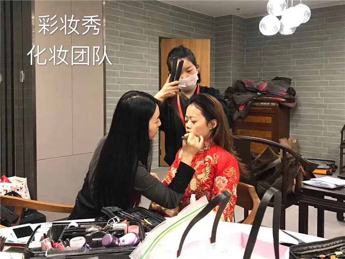 彩妆秀化妆团队为新人和主持化妆造型!