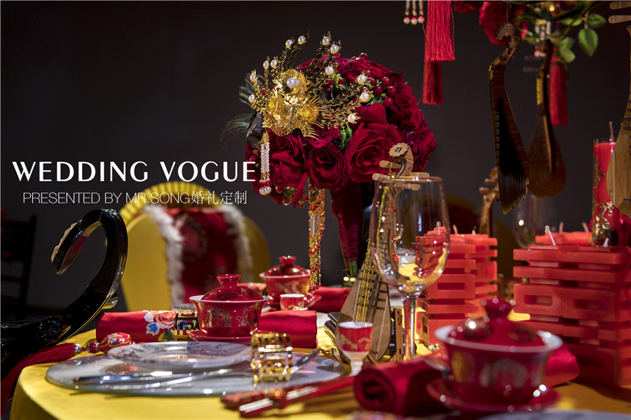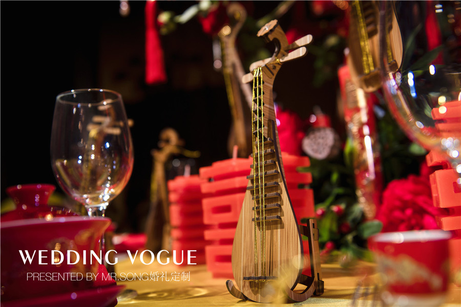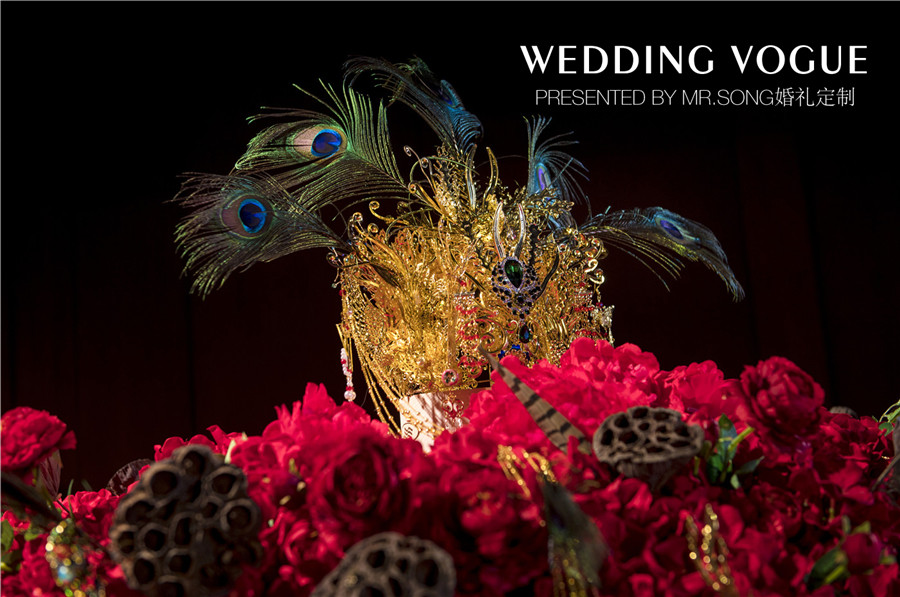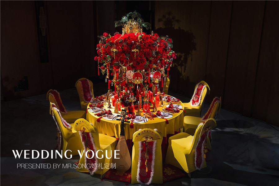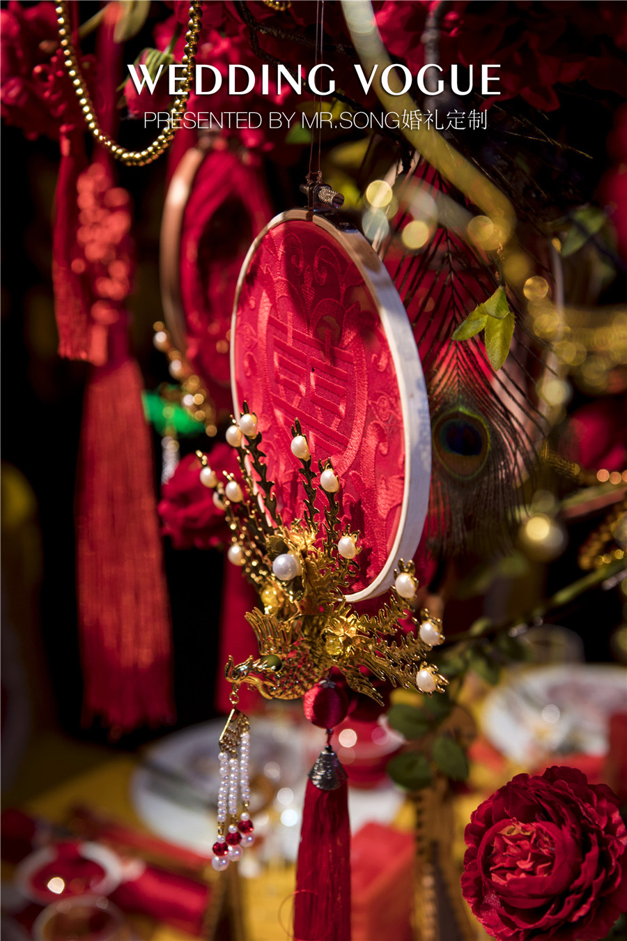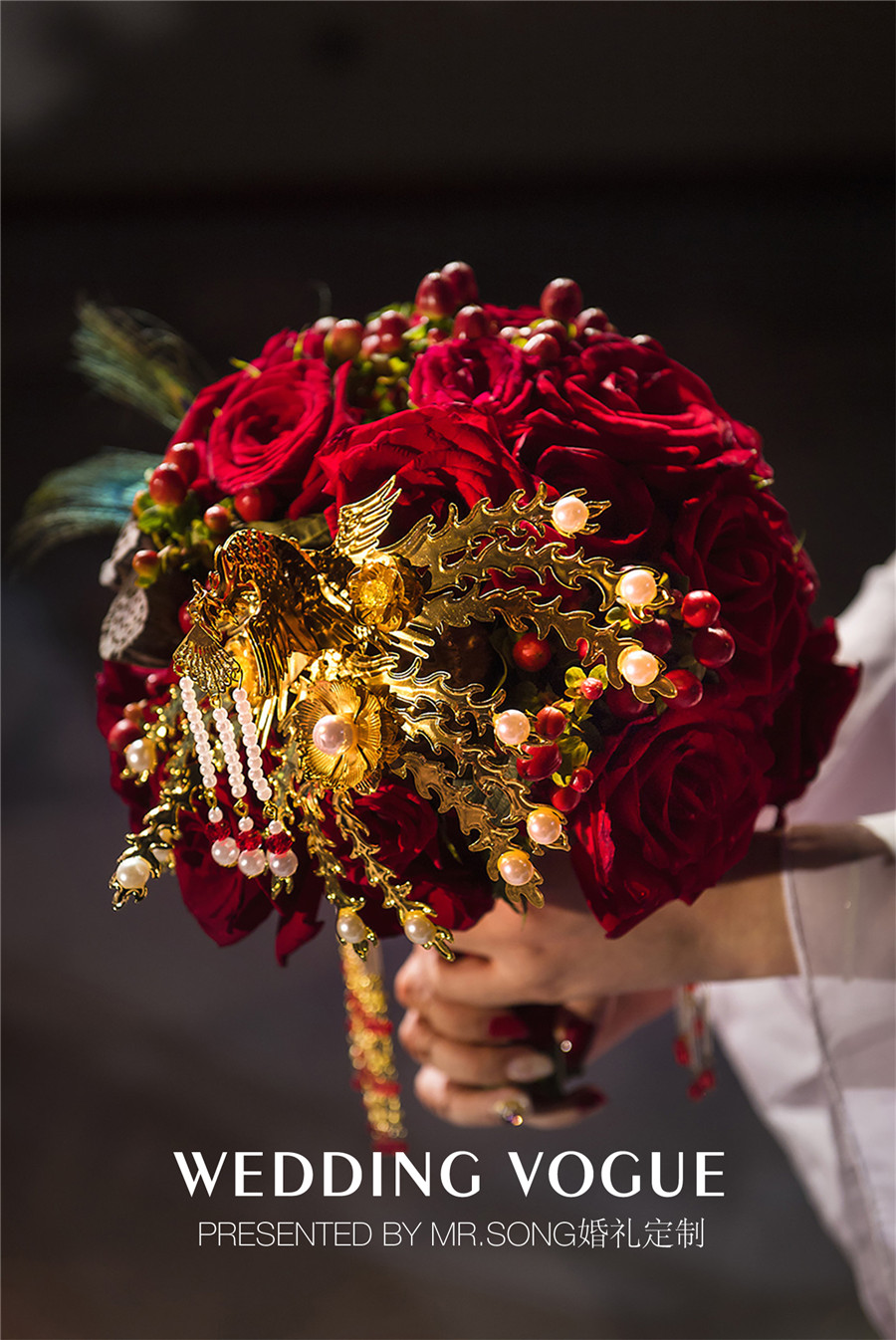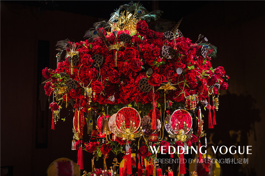 在主花材的选择上张小松(MR.SONG婚礼定制创始人)使用了红玫瑰,虽然是很常见的花材,但是红玫瑰的颜色很正,红的浓烈而美颜,犹如昭君身着红袍,美艳绝伦的形象。