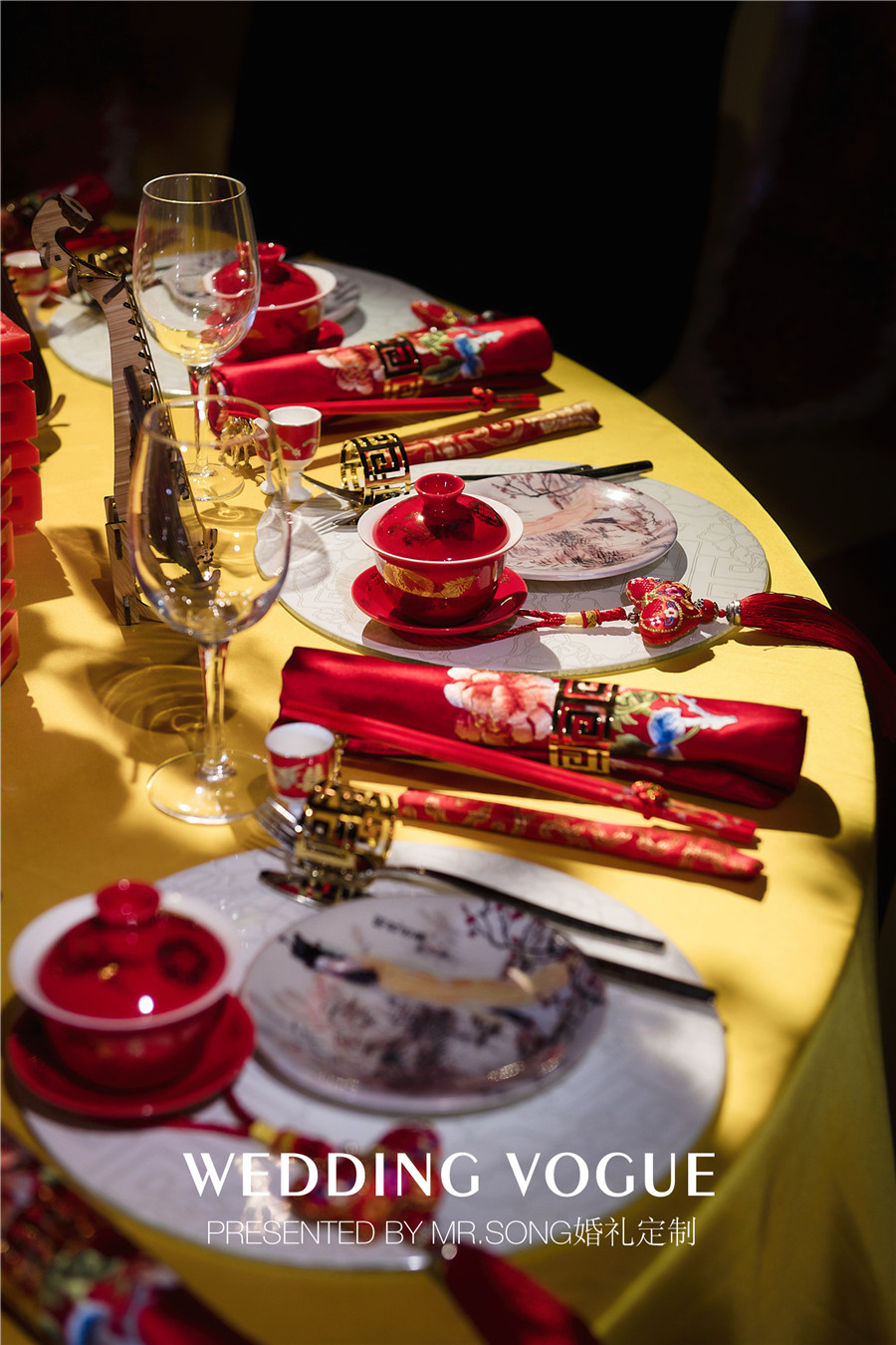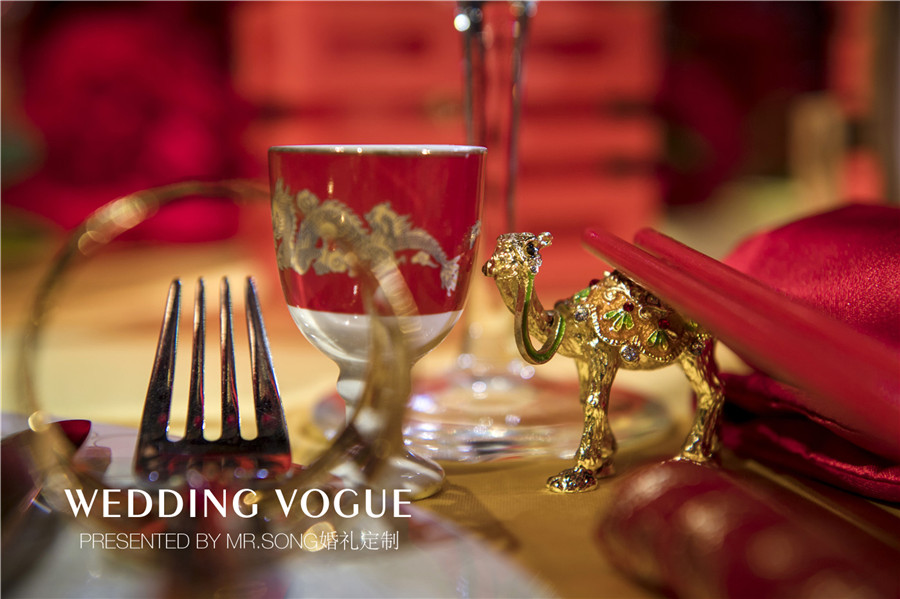 这组作品的设计者是来自天津的MR.SONG婚礼定制,《昭君出塞》取材于中国历史故事,所以在设计中使用了大量中国传统元素表现昭君出塞时的盛大场面。