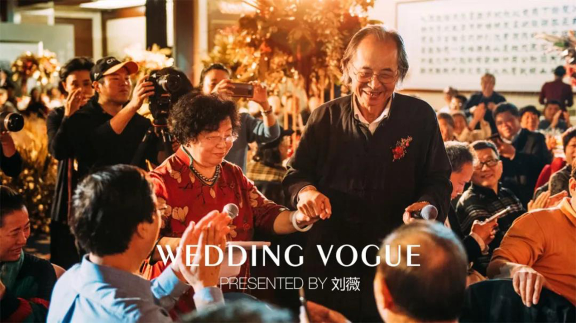 酒红与金色的搭配正是为一对为中国画坛奉献几十载的艺术伉俪的金婚时刻最好的诠释。