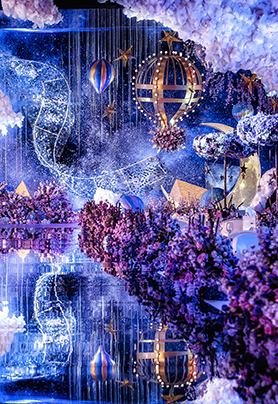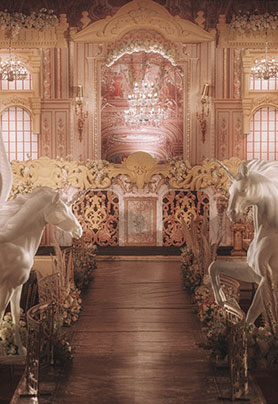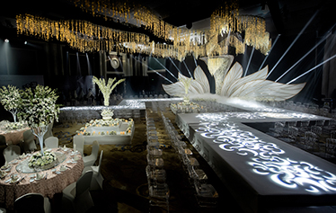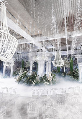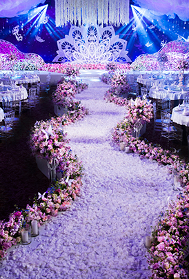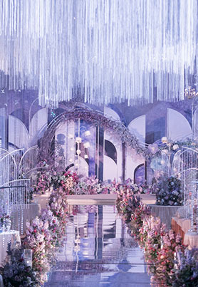 日期:2023-03-07 文/萝亚婚礼&回车键 图片提供/萝亚婚礼一「片」直径10米的水晶雪花,在穹顶上蔓延开来……灯影之城悬浮,华灯初上,麋鹿、独角兽守护着澄澈的心湖,新人的爱意和各式装置,构成了一场雪的传奇。