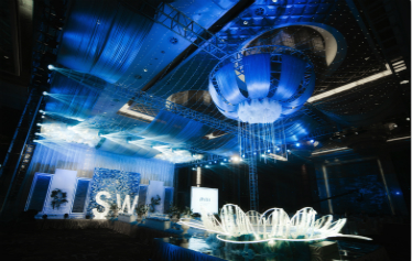 日期:2023-03-07 文/雁瑜图片提供/ HANA宴会设计将装置艺术与空间氛围巧妙融合,用装置艺术、绳结艺术、多媒体艺术等多种形式与烛光音乐会场景感互动连结,融合共振,共同营造出一个沉浸式高级感婚礼。