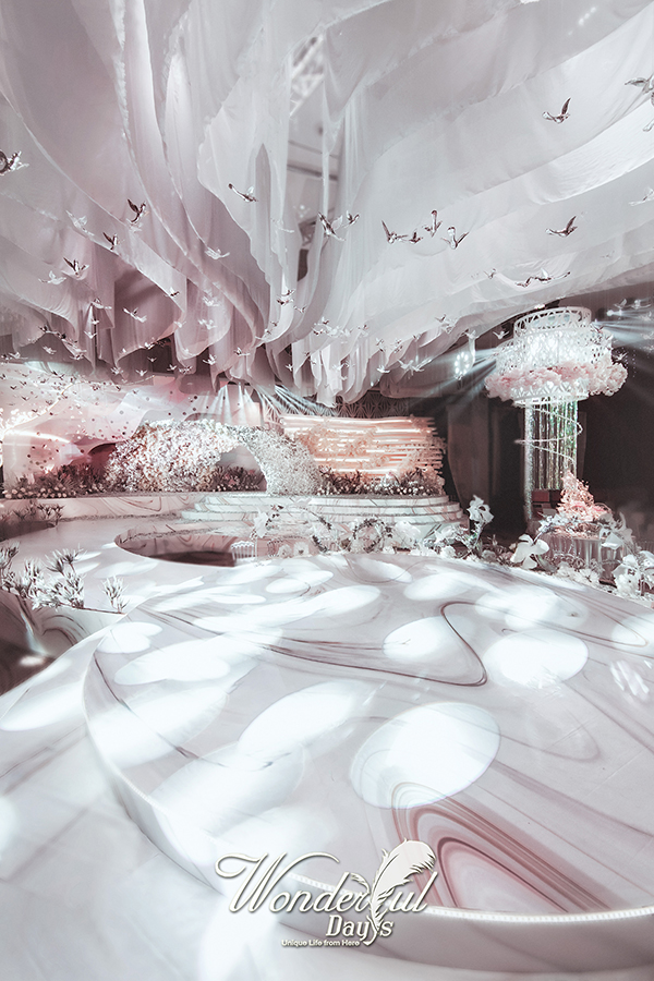 日期:2020-12-07这场婚礼以物理学概念中的量子纠缠为设计理念的延伸,结构雕塑空间,空间承载光影。纵使两种介质相隔千亿光年,仍能以量子纠缠的力学渗透着无界时空的联系,重力波传递着在万千星尘中漂浮着的爱的讯号,你与我仍能坚守着彼此共同的纽带。