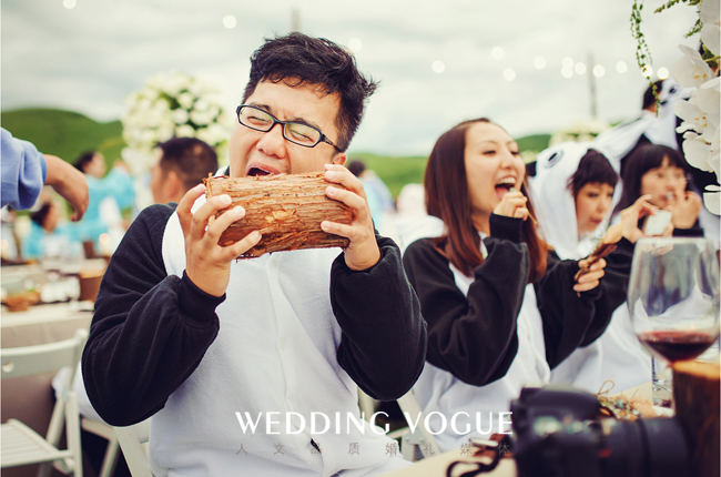 清新的大草原是最能让人放松心灵的地方,新人及所有的宾客都可以在上面尽情地拥抱那份自由,婚礼当天,新郎起得很早,为新娘亲自制作了手捧花,在等待披着白纱的新娘出现的那一刻,他忍不住哭了,也许这一刻他已经等待了很久。