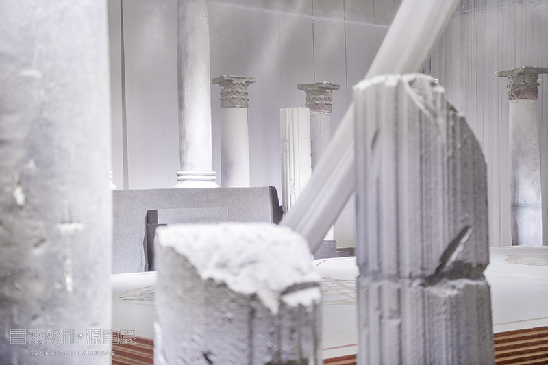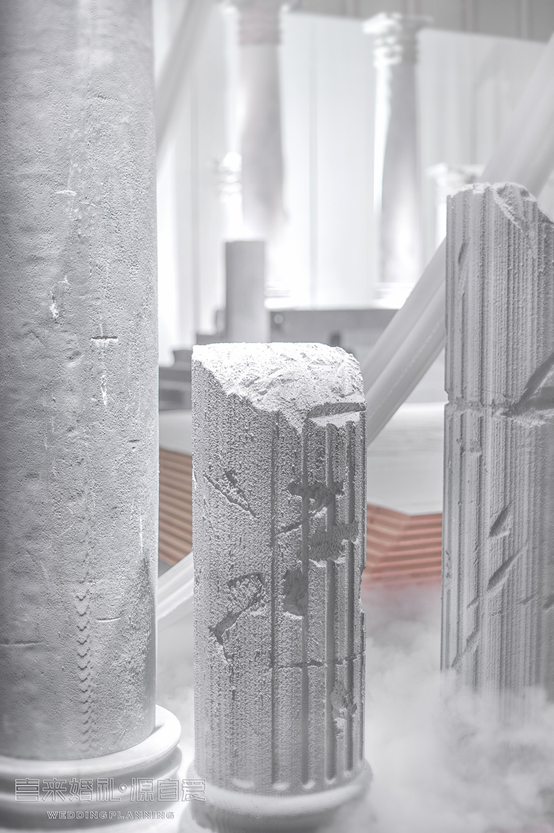 正如所见,现场没有一朵花、一片绿叶。我们认为婚礼最本源的是回归到本心,而并非一定需要人们常看的花草树木来做装饰才是婚礼。