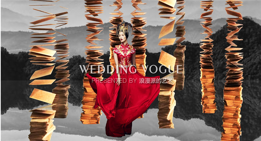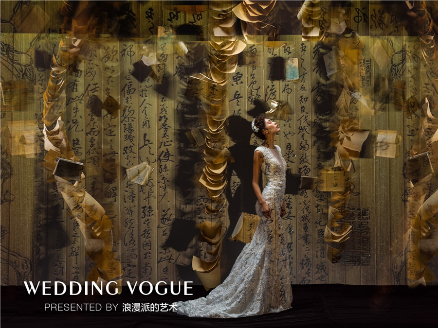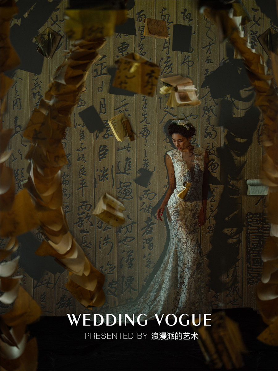 “琴棋书画”样样精通,是中国新娘才华横溢的最佳表达。运用中国经典、纯粹的传统符号,比如棋、柬、画、书、文字等元素制造场景,使新娘融入到整个画面中,展示新娘由内而外散发出的才气。泛黄的书本,随性的文字,老旧的画纸,在空中飞舞,好似新娘遨游在书卷中,享受着书香画韵,蜕变成更好的自己。