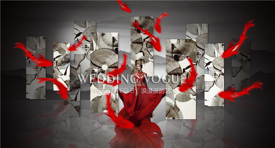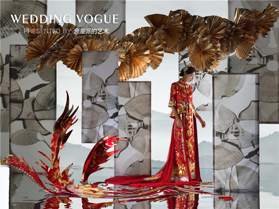 如何既凸显中国新娘的特色,又做到推陈出新呢?浪漫派的艺术团队决定将创作角度放在当今社会环境变化下中国女性的成长蜕变中。一个女孩从长大到嫁为人妇,有多种身份的转变,不论是3岁的懵懂纯真,20岁的青春无敌,又或是30岁的温润成熟等等,女性的精神气质从来不是单一的。浪漫派的艺术团队以此为灵感,选取中国经典的传统元素——“破茧成蝶”、“龙凤呈祥”、“琴棋书画”等来表现中国新娘不一样的美。