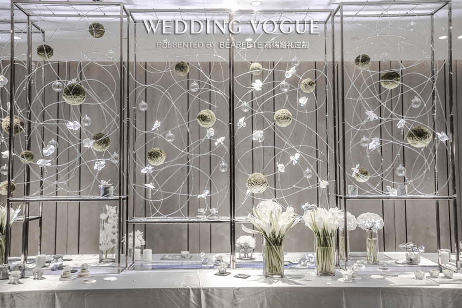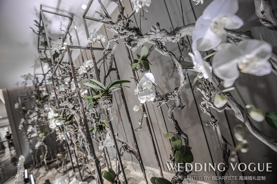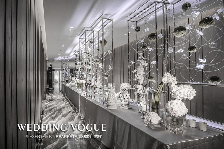 从酒店大堂到宴会厅,经过的区域也是BEARFETE 高端婚礼定制团队设计的重点区域,因为在小熊戴欣看来,参加宴会宾客整个动线的感受很重要。这种感受不是停留在某个平面的视觉,而是整个大的空间设计。每一个单独的独立区域的设计,相互之间也要有感受上,情感上的联系,这才是一个完整的设计。