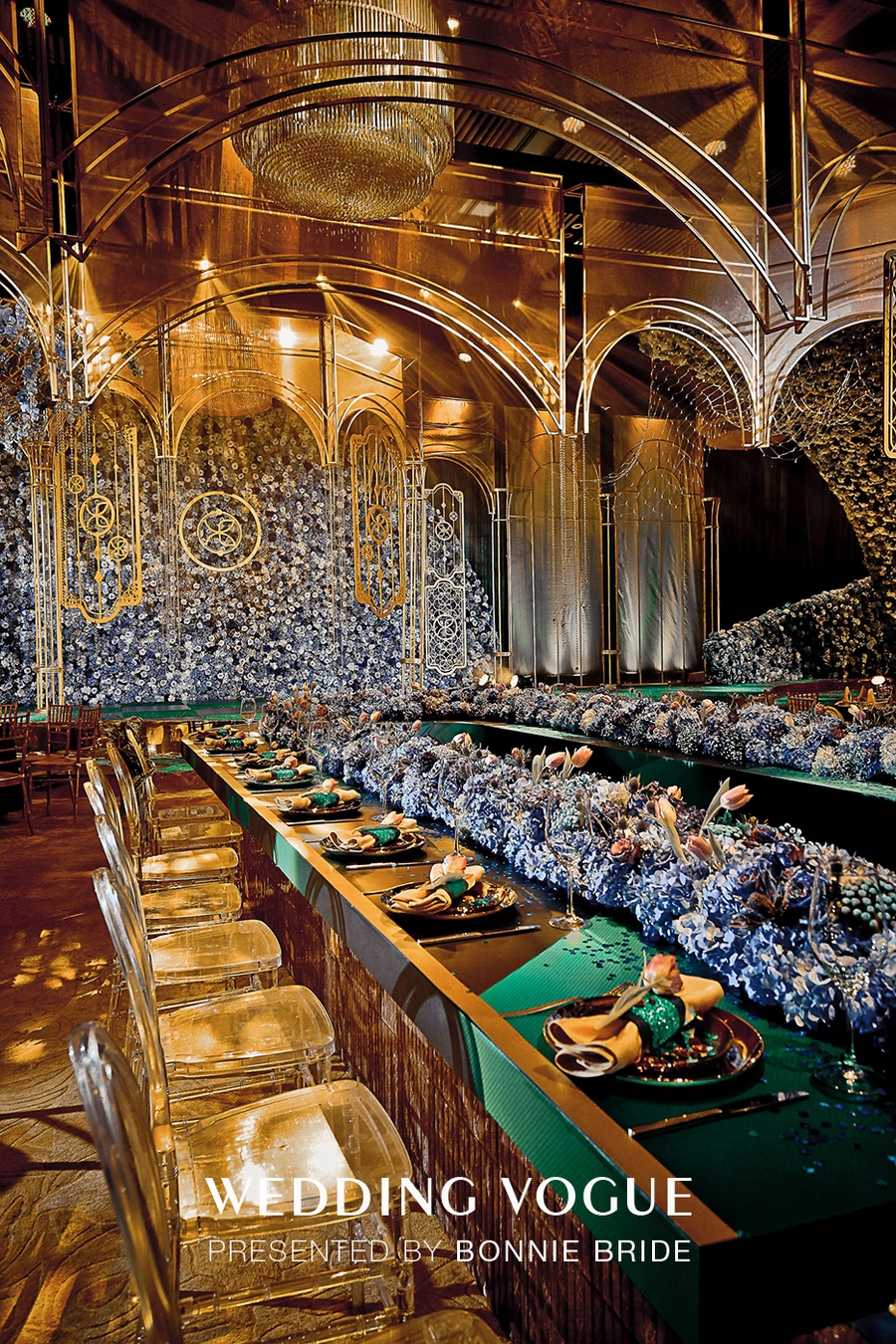 是以,在婚礼的设计上,伯妮的设计师便打算以奢华并细腻的元素共构出优雅精致的意象。将沉稳的欧式宫廷感融入设计之中,利用巴洛克建筑艺术廓型和简洁的硬朗线条,再现一座具有现代设计感魅力的梦幻城堡模样。