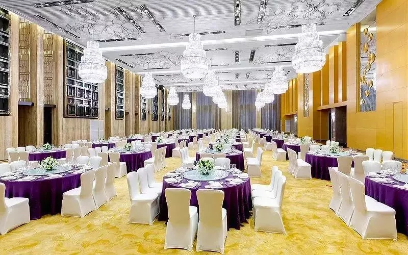 当三层舞台高低错落横贯于整个宴会厅中时,开放式的舞台设计不仅让宾客可以在厅内无死角的看到舞台,同时亦给予了宾客视觉上的新体验,将视觉冲击感最大限度的呈现。