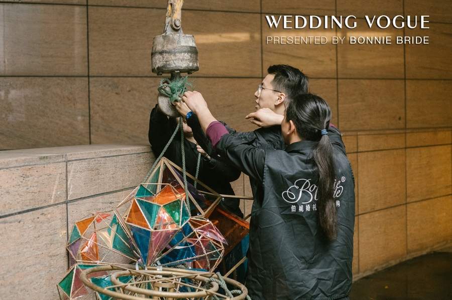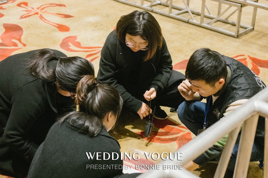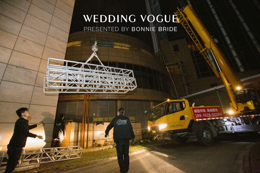 在这场婚礼耗资百万的背后,是伯妮团队106 名工作人员,出动20 辆大型货车,2 辆起吊机,耗费10万多鲜花,再利用30个小时搭建完成的日夜操劳。亦是设计师愿意打破常规局限,去实现小白和倩倩盛大婚礼愿想和可能的真诚与心意。