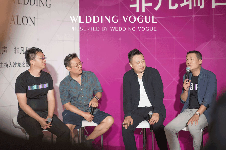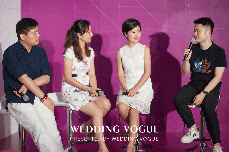首先上台分享的主持人是张晓光,林晓凡、邵晨东、高志庆。他们给出的一致答案就是勤奋、努力,踏踏实实做好每一场婚礼的主持,是所有婚礼主持人内心最大的情怀,心怀新人对自己信任,一步步中不断耕耘和肯定自己,让这样一份平凡的职业变得更好。希望将这份积累和努力而得到宽容的心态能够通过主持每一场婚礼传递给每一对新人。