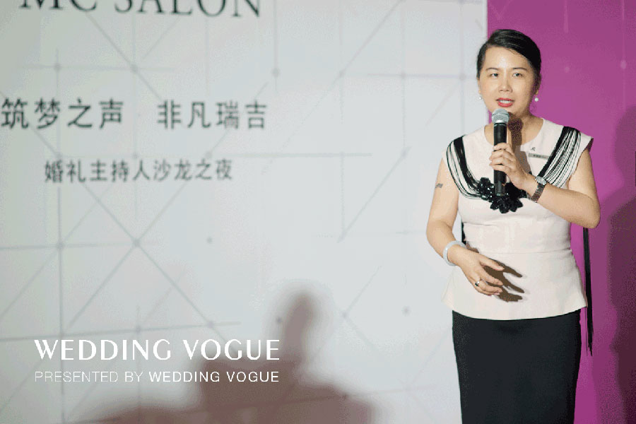 最后,瑞吉酒店市场销售总监郭慧群也讲述了她对婚礼和婚礼主持人工作的理解,在她看来婚礼是一场具有艺术气息的活动,能把抽象的爱和美,通过其他形式表现出来,传播和展示爱和美,切实是一件功德无量的事情。