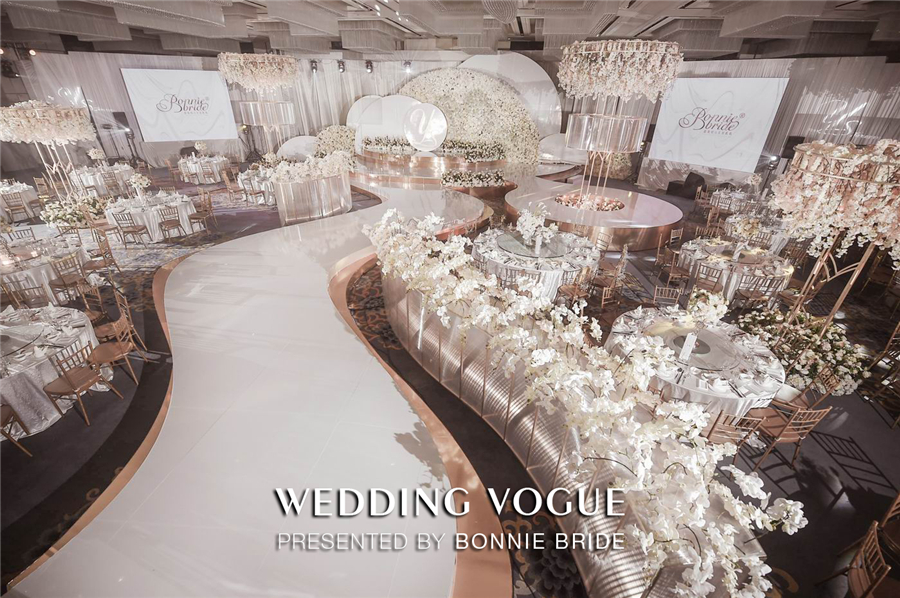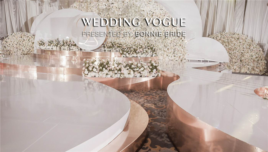 主舞台上不规则的半圆形背景蕴育着静谧的白色,它们立体多层次的架构,是将许许多多的平面拼接一起的舞台背景。两面满是鲜花铺就的花墙,也让主舞台显得更加丰富饱满。而设计师也试图通过这样不同材质的组合,来表达一种情感的起伏。