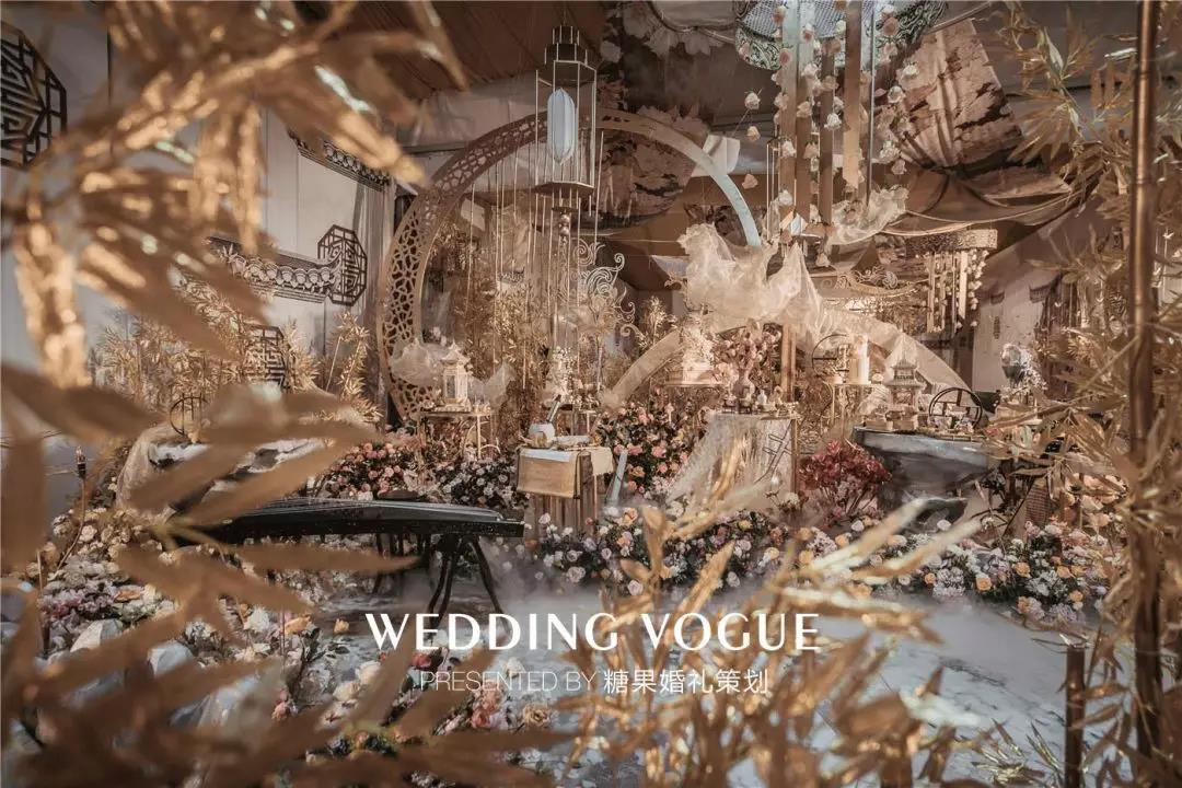 “新中式”去除了一些刻板教条式的东西,融入了西式婚礼的呈现方式。而这一场“新中式”婚礼的不仅古风古韵被展现得淋漓尽致,大气恢宏的布置,让名门望族的感觉被活生生地勾勒出来了。