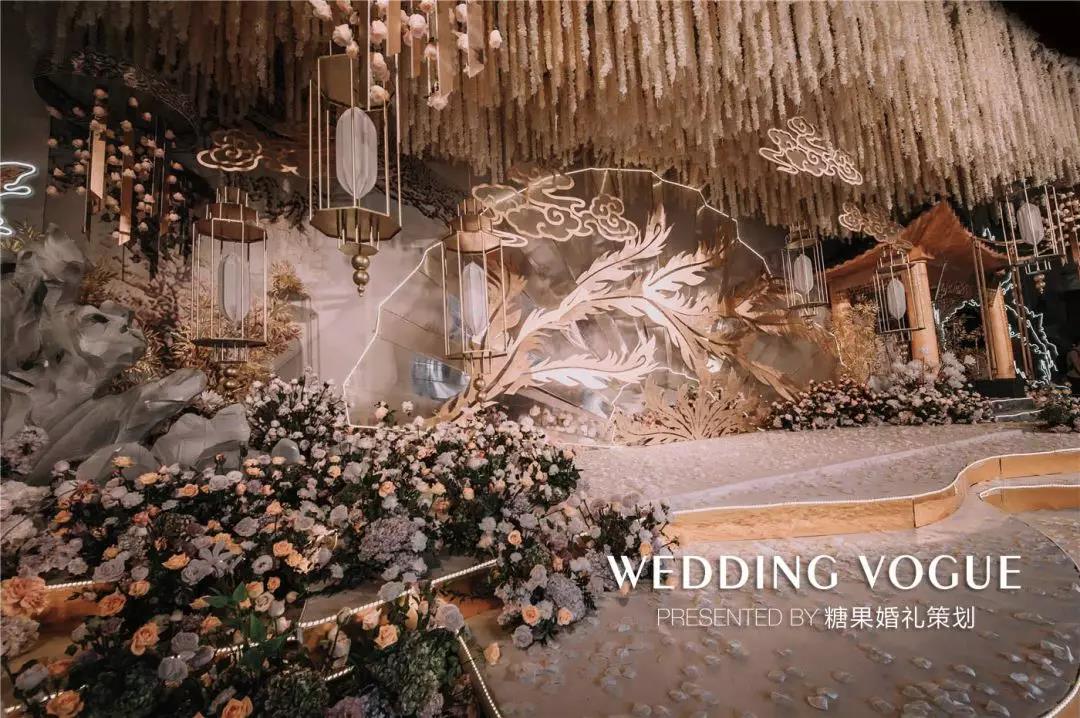 而在黄金周期间刷爆朋友圈的这场百万婚礼,有海归背景的新人也同样选择了“新中式”婚礼。耗资百万的“新中式”婚礼能呈现出怎样的场景以及带给我们哪些启发呢?