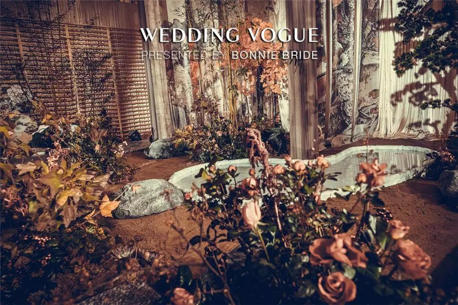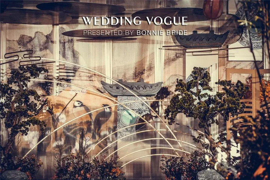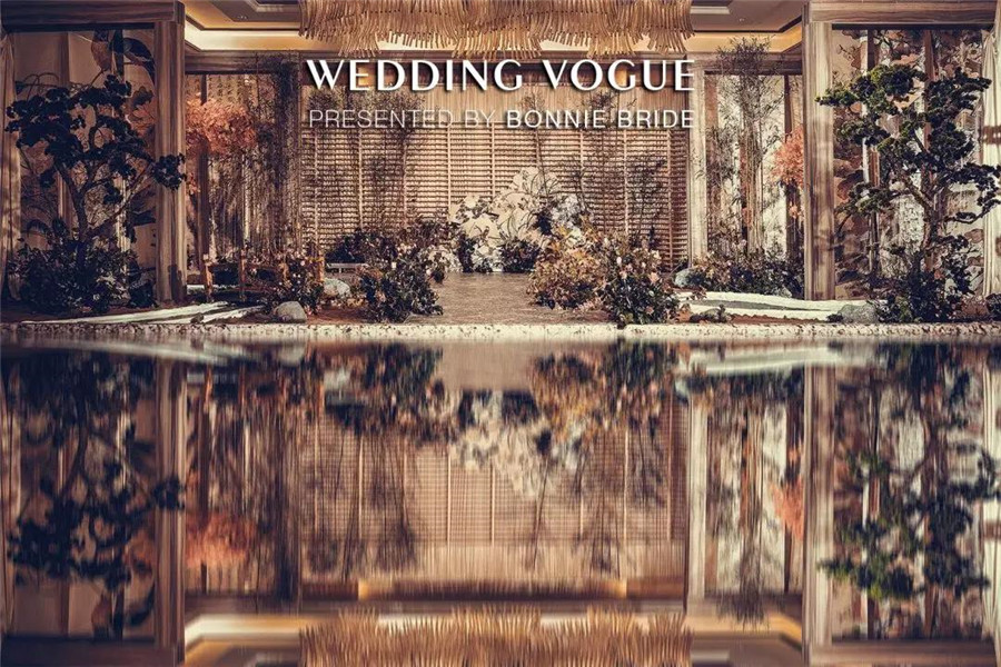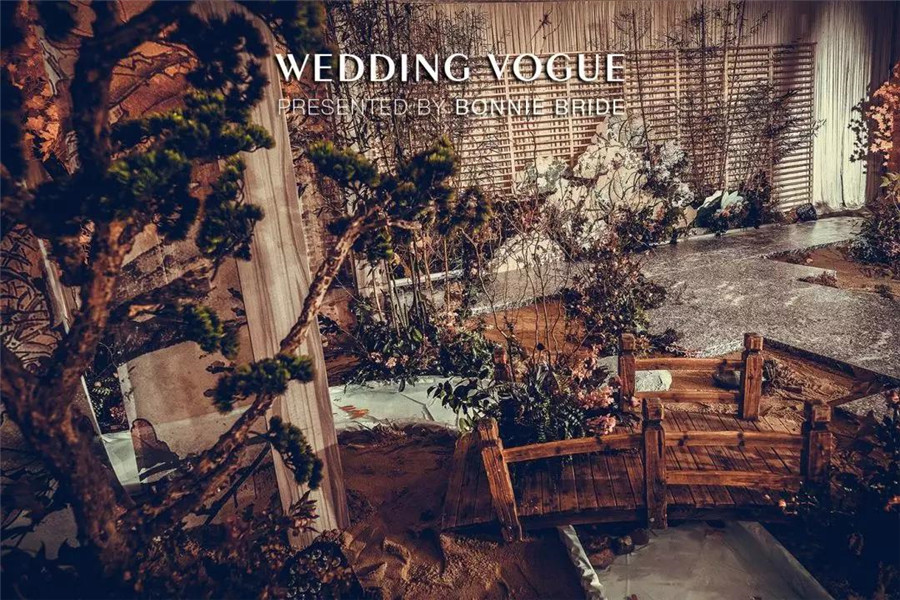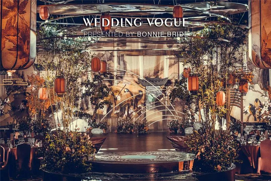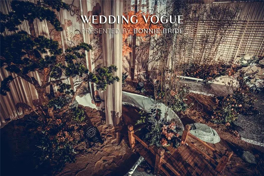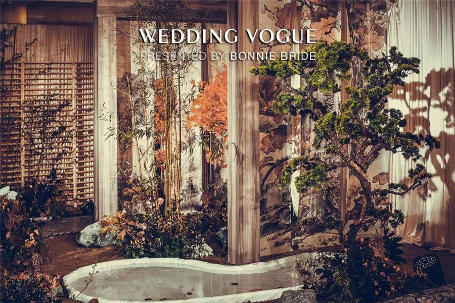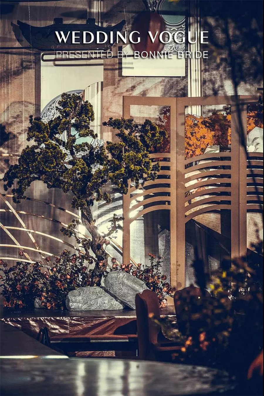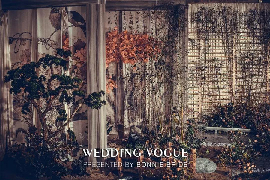 于是古人看园林,赏的是那份“悠然见南山”的闲适;今人看园林,品的是一份贯通古今的底蕴。不过时值萧瑟寒冬,室外的园林再美,也难抵寒风的侵袭,那不妨移步室内,看一场新中式园林婚礼,于温暖之中享受伯妮所呈现的如画诗意。