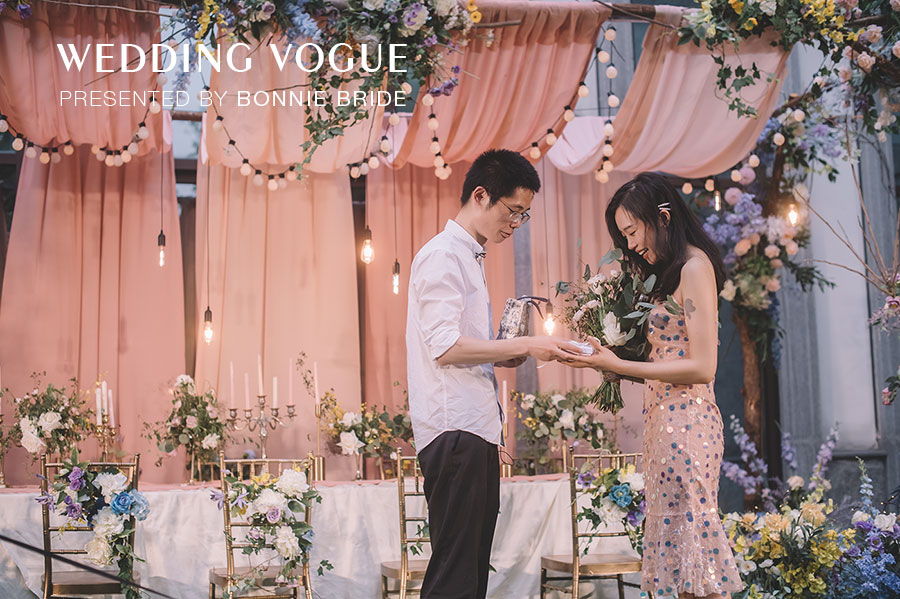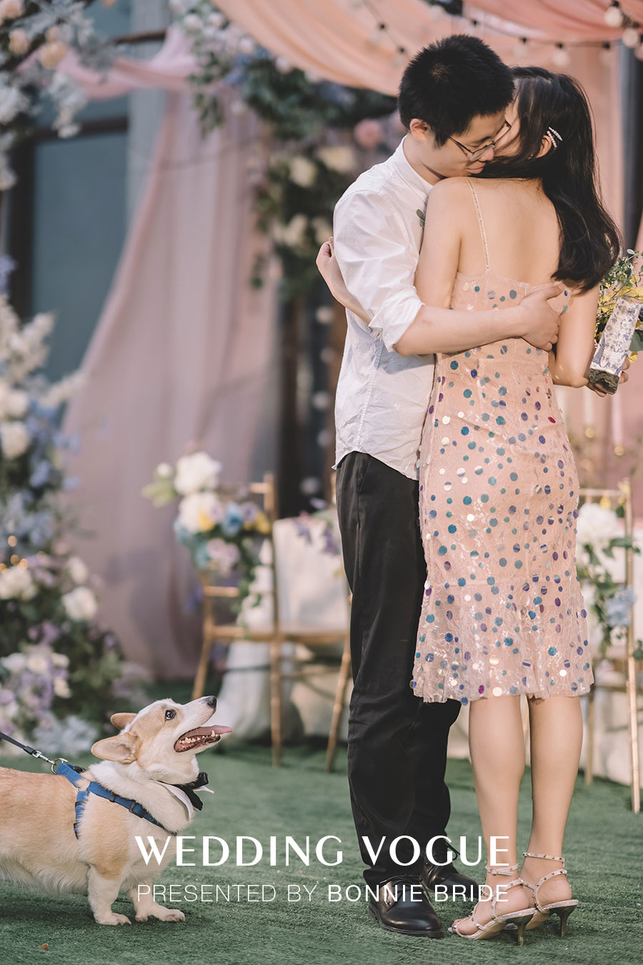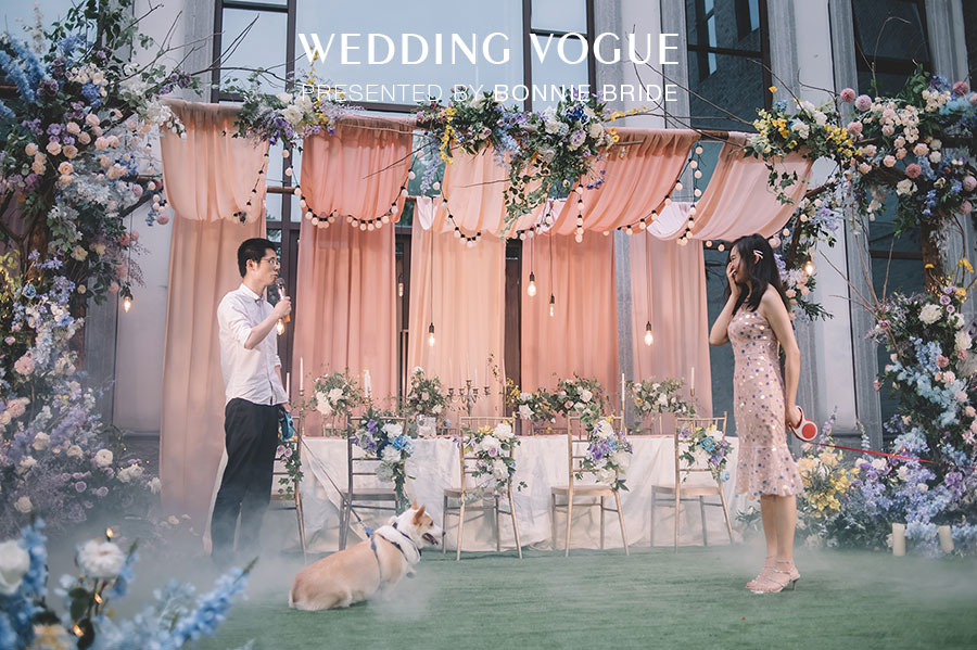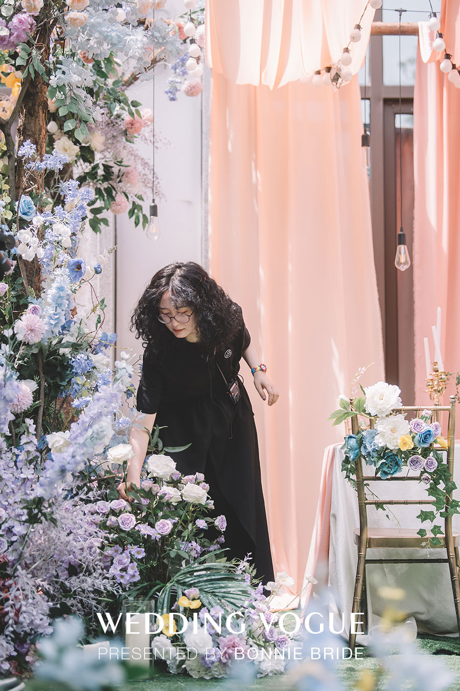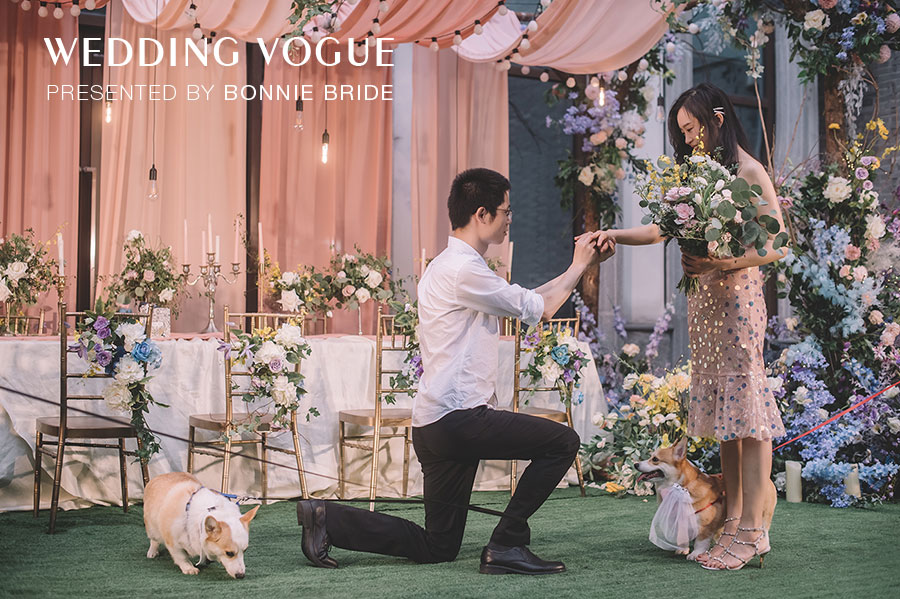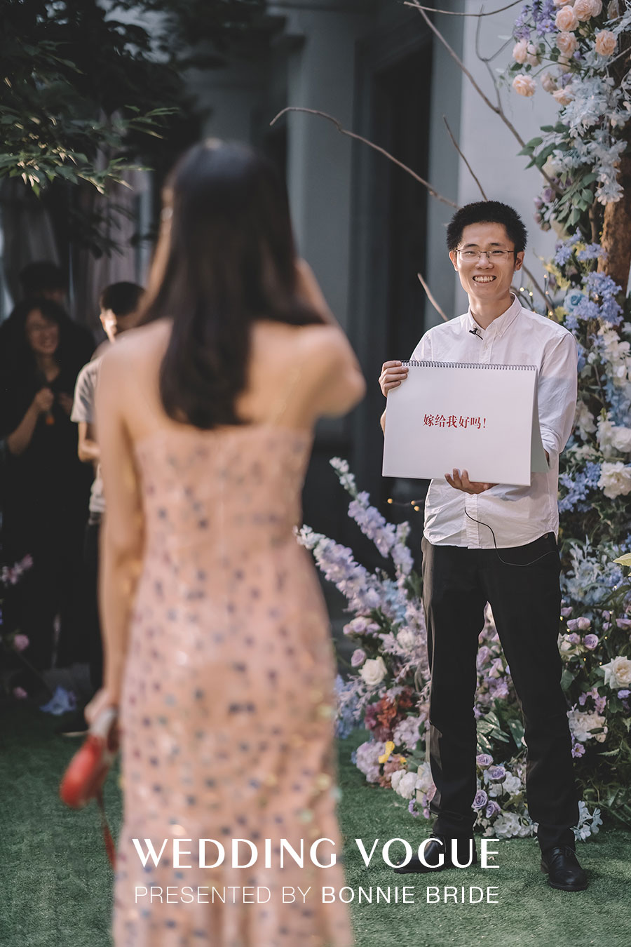于是,伯妮携手西溪喜来登在酒店的户外临水平台,用今年最chic的蓝紫色系,专门为他们打造了一个甜蜜的求婚布景。