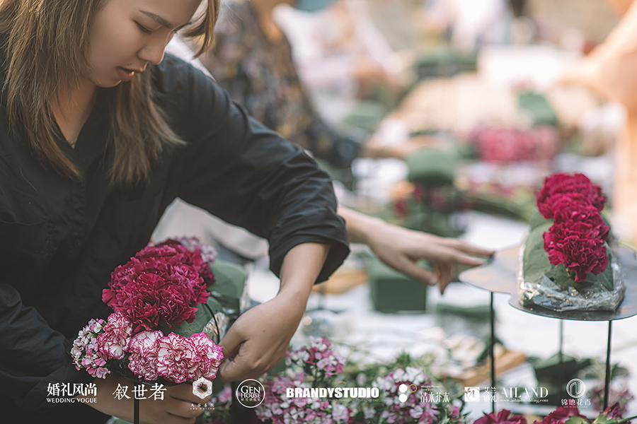 在课程中设置婚礼晚宴体验,不仅希望通过仪式唤醒心中对婚礼的热忱,更是借由晚宴,让学员参与晚宴搭建实操,桌花花艺体验之中。
