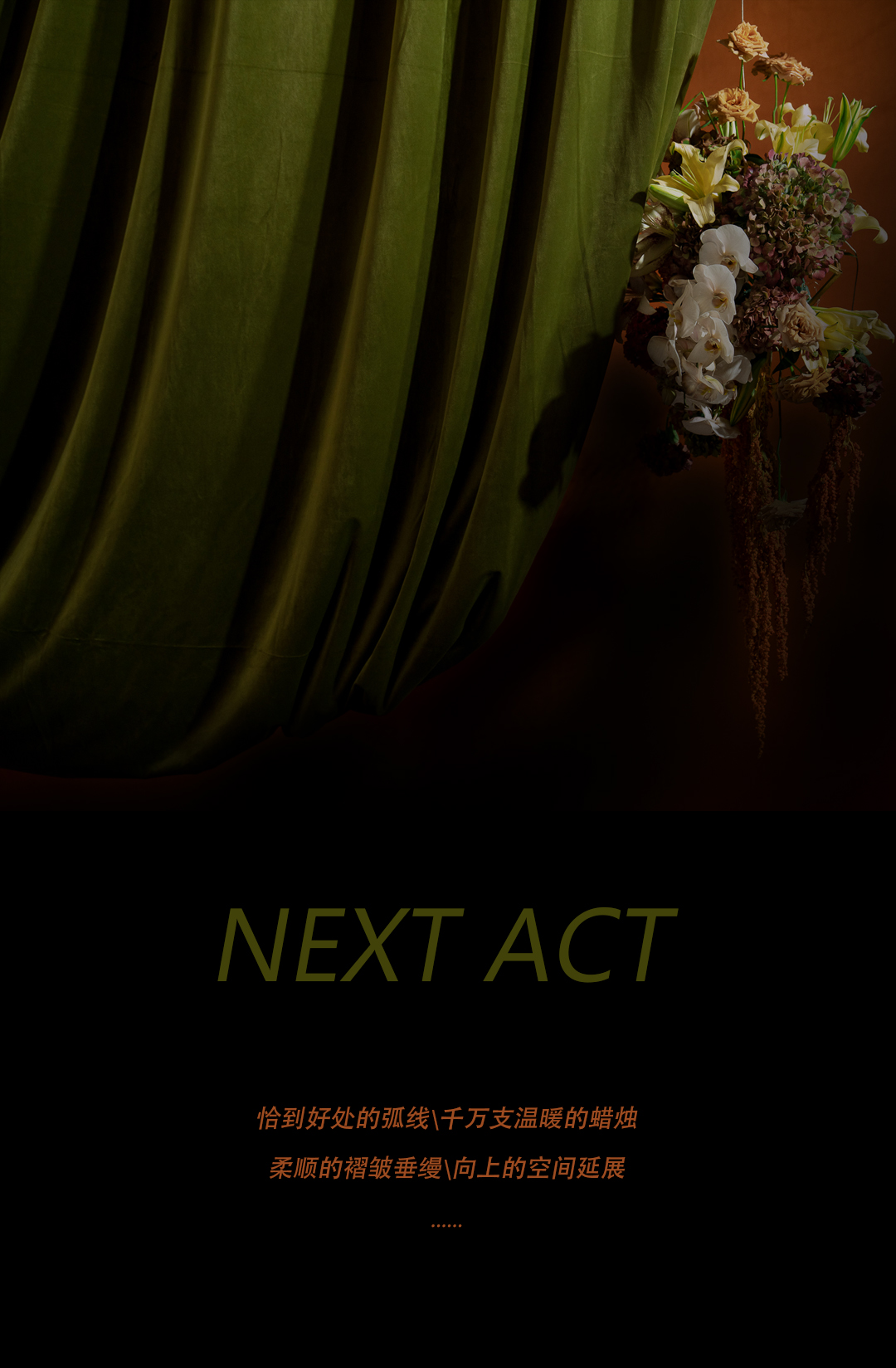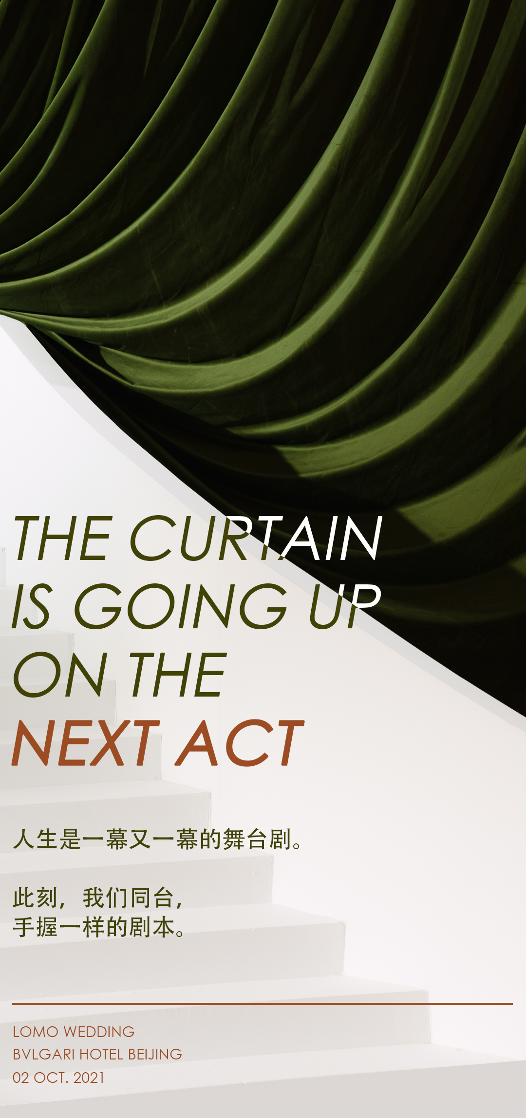 选用剧场幕布作为舞台背景,呈现或「 启」或「 落」的动态。是为是一个阶段画上的句点,也是下一段旅程的启幕。
