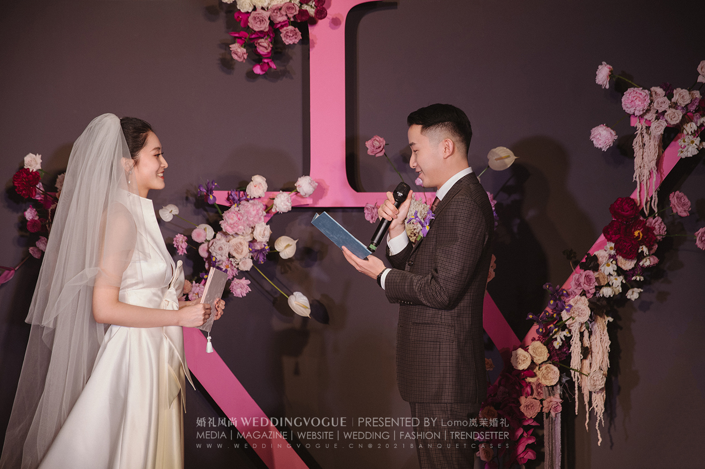 fu和喵是建筑师,就连fu的誓言中,也提到了“钢筋”、“混凝土”......于是Lomo岚茉婚礼将他们日常会接触到的建筑材料作为婚礼设计元素,完成了一场超时髦的婚礼。