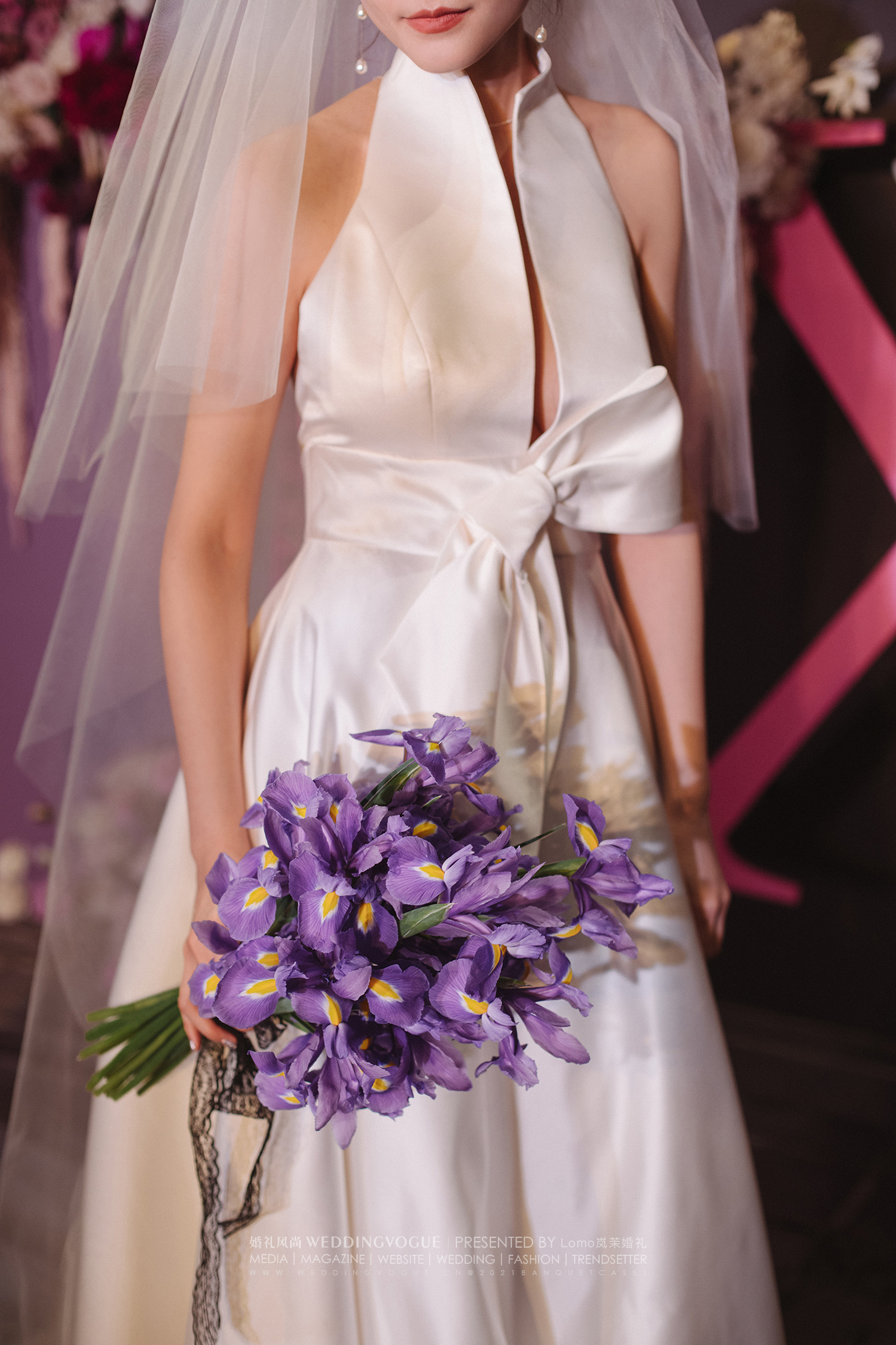 于是Lomo岚茉婚礼将鸢尾作为她的手捧花,鸢尾花开,仿佛紫色的蝴蝶翩翩起舞,美得像是童话。
