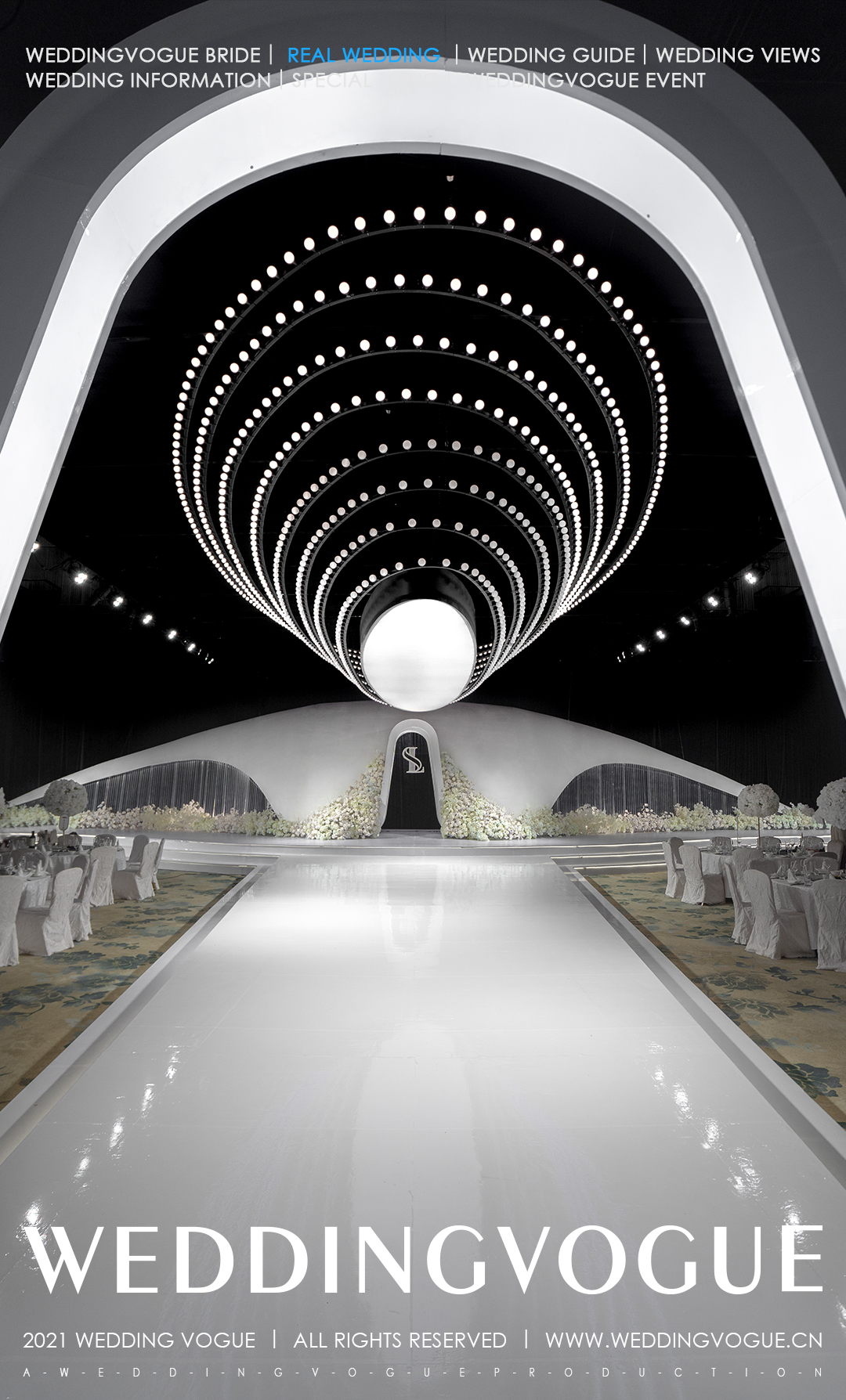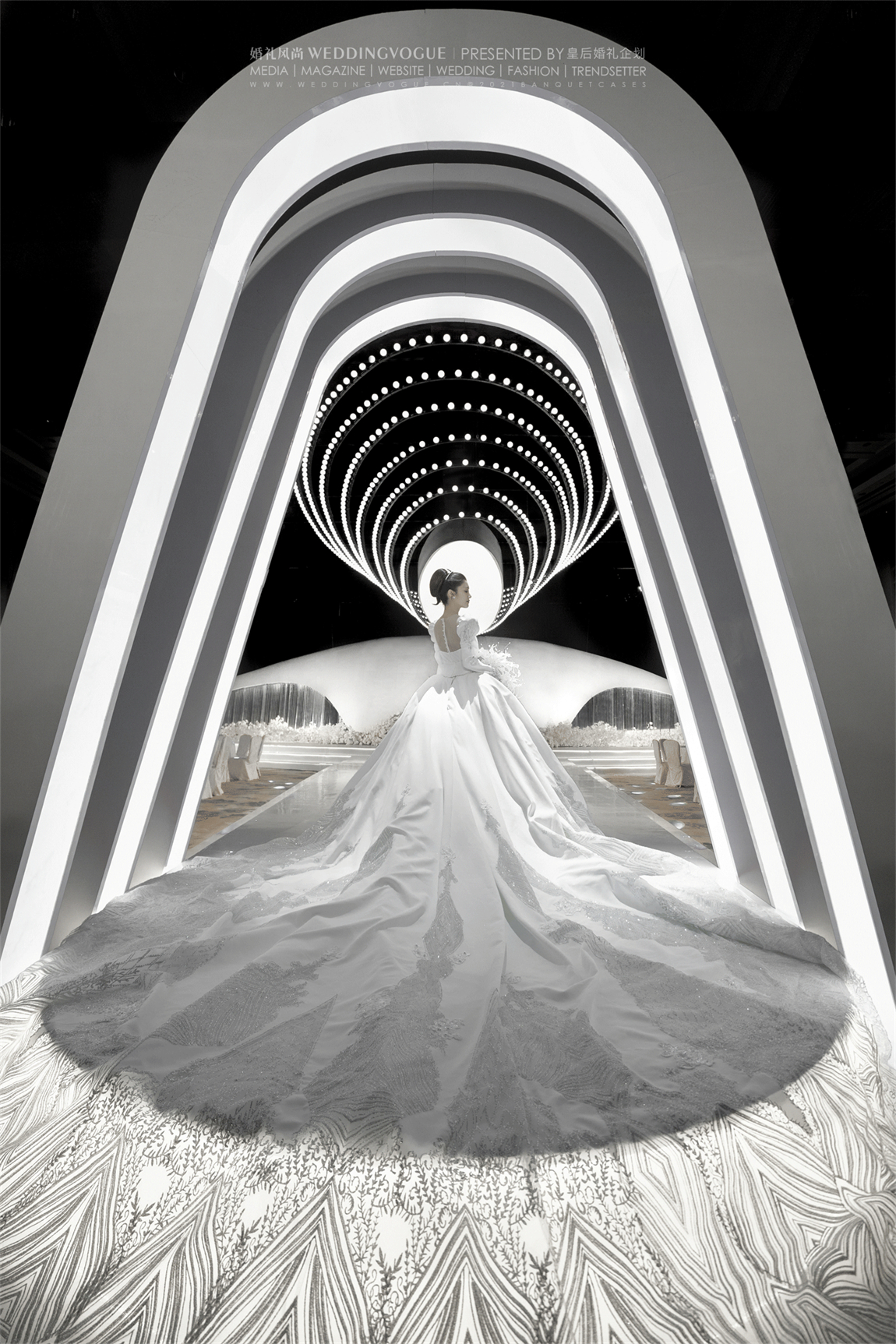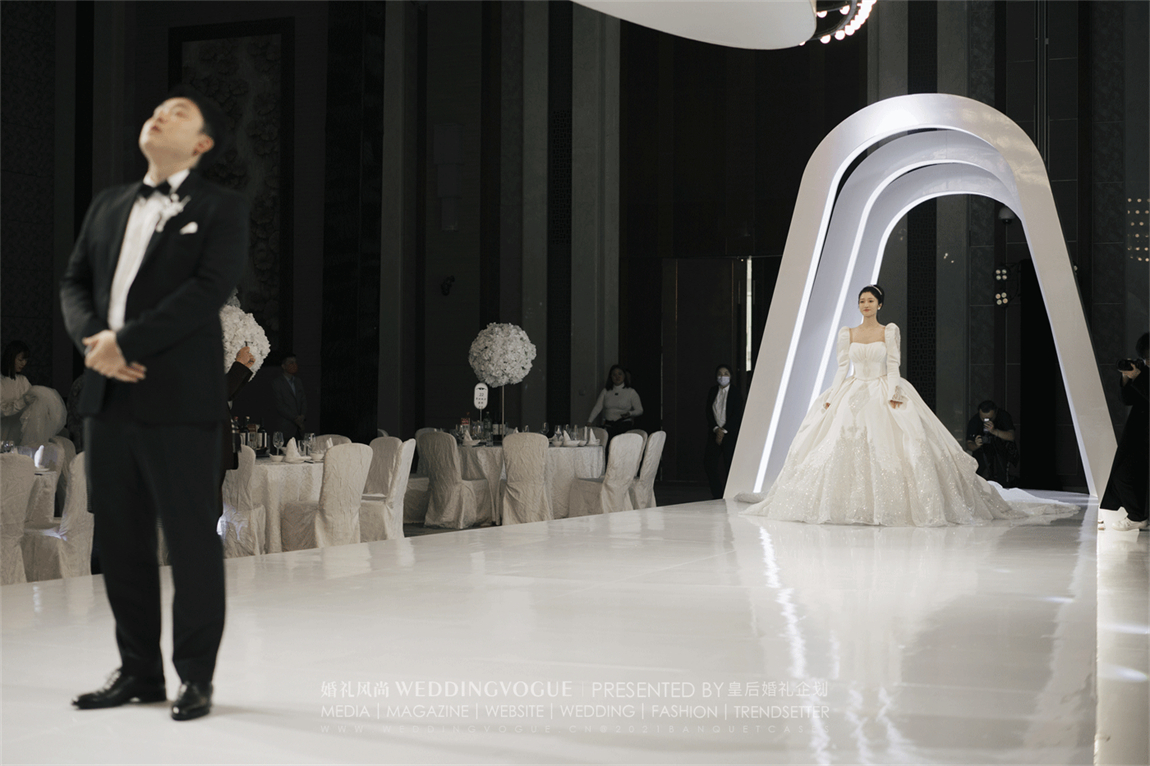 皇后婚礼选用黑与白作为空间的主要配色,空间中没有过多的矫饰,利用大量的留白展现现代极简主义下的写意美感。