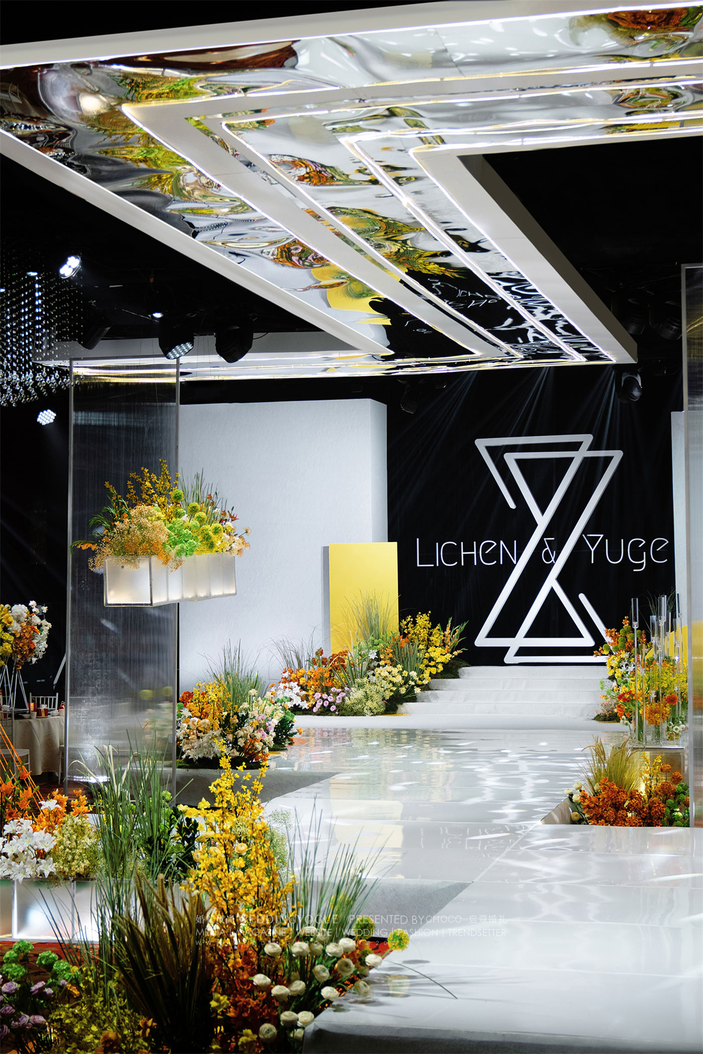 作为秀场风设计的一部分,通往仪式区的走廊其形式也有了更多不同呈现的可能,在这里,它应该被称为“Z台”。