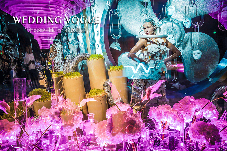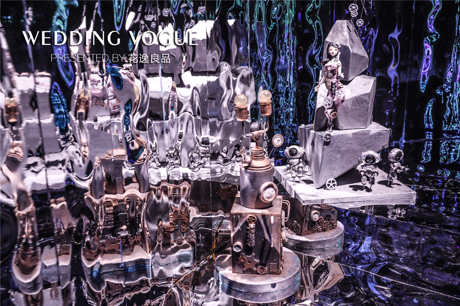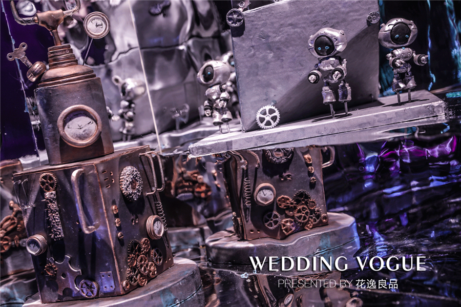 【No.2118】既是编码也是代表未来的一个时代,在构思发布设计的初期,花逸良品产生了想要做一场革命的想法。几百年前的工业革命,让人类从手作时代跨入机器时代,而回归到婚礼本身,花逸良品婚礼则想要通过这一次发布向所有的婚礼手艺人致敬。这个立意,也通过了主舞台上一双能生产出W.V的机器人手来做呈现。