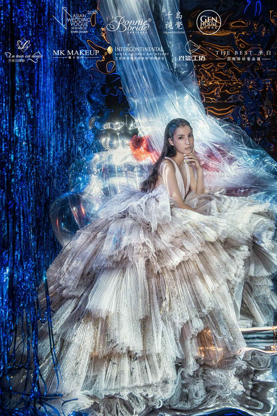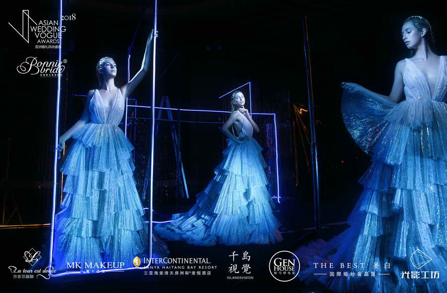【大片出品】:婚礼风尚 【婚礼机构】:伯妮婚礼策划机构 【大片摄影】:千岛视觉 【大片摄像】:根号肆电影工作室 【妆容造型】:徐祥 【婚纱礼服】:The Best圣白国际婚纱礼服 【大片灯光】:孙源 【婚礼甜品】:洛蜜塔婚礼甜品台 【大片道具】:飞墨筑造 【大片地点】:三亚海棠湾天房洲际度假酒店