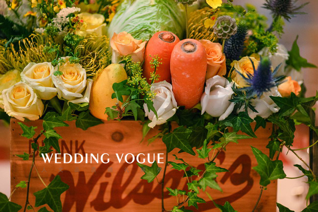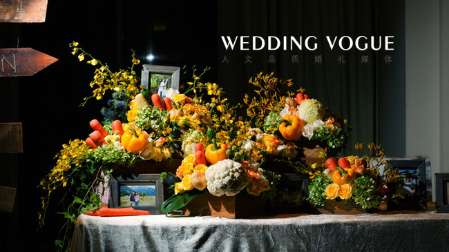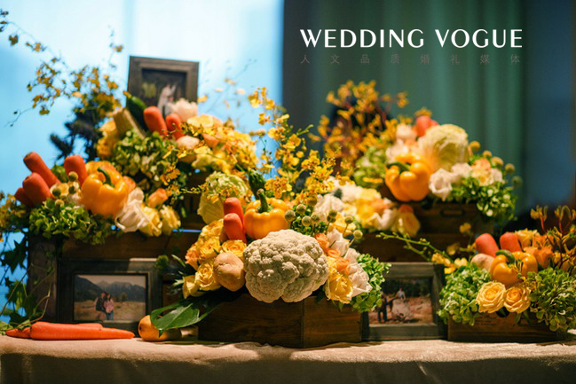 你是我的菜,哪个菜?你是我的花椰菜,我是你的胡萝卜!我们把农庄果园搬进了宴会厅。特别的西兰花新娘手捧,你是我的菜!清新自然风的长桌,好友们齐齐坐,在半岛的宴会厅里,依然高洋上。农庄果园的幸福之门,在这里誓言,淳朴自然的爱情是你我永恒的追求。