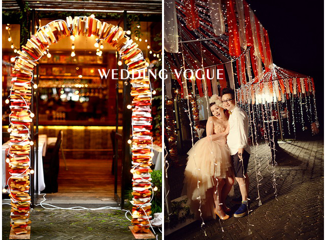 我们的婚礼应该是洋气的,比如二维码,内涵的书制拱门, 从天而降的雨伞背景,现场的乐队,冰激凌车。