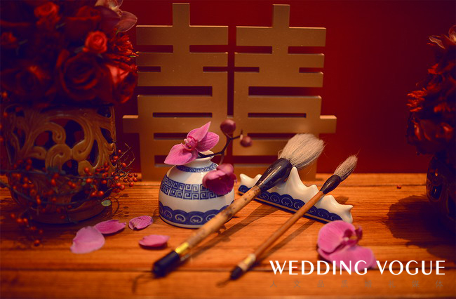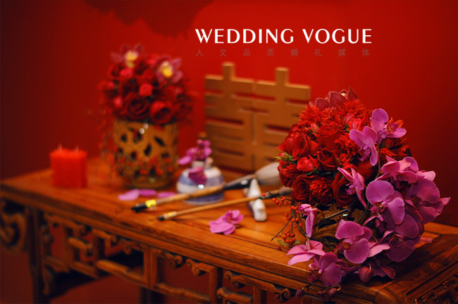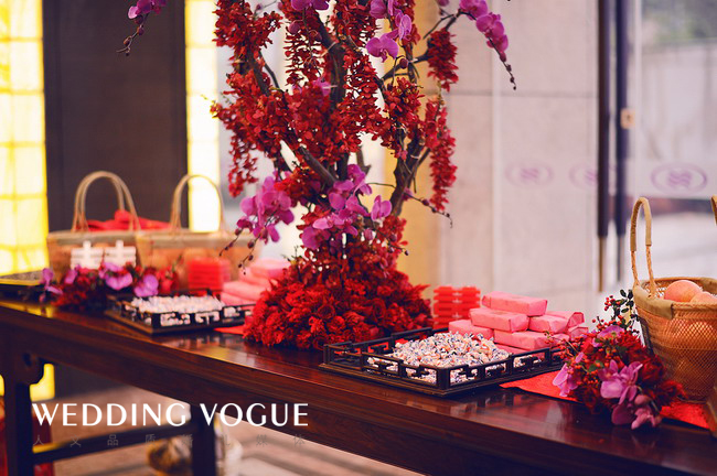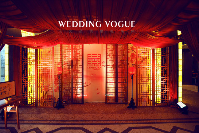 纯粹的中国红印记,将传统美与现代风俗完美的柔和在一起,搭配红色系的绸缎、蜡烛、灯笼、喜字等经典元素,将新中式婚礼的风俗格调体现的淋漓尽致,蕴含着美感,勾起淡淡回忆。