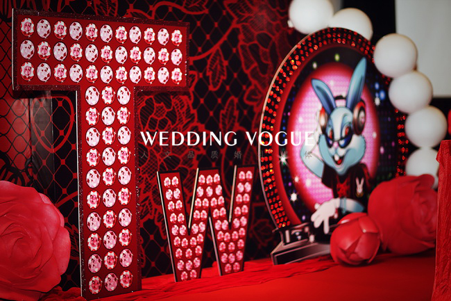 ![]() 新娘叫兔子,新郎叫阿二,提取的谐音TWO为主题,整场以时尚,诱惑为主线展开